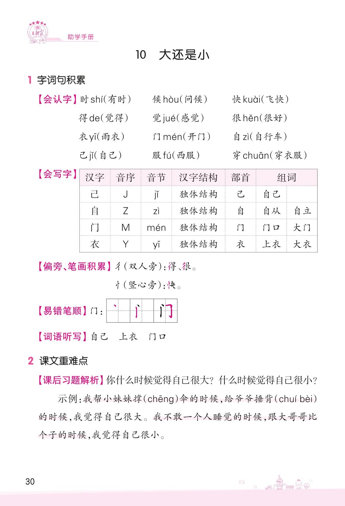 2022上册一年级语文人教版 第七单元——10 大还是小