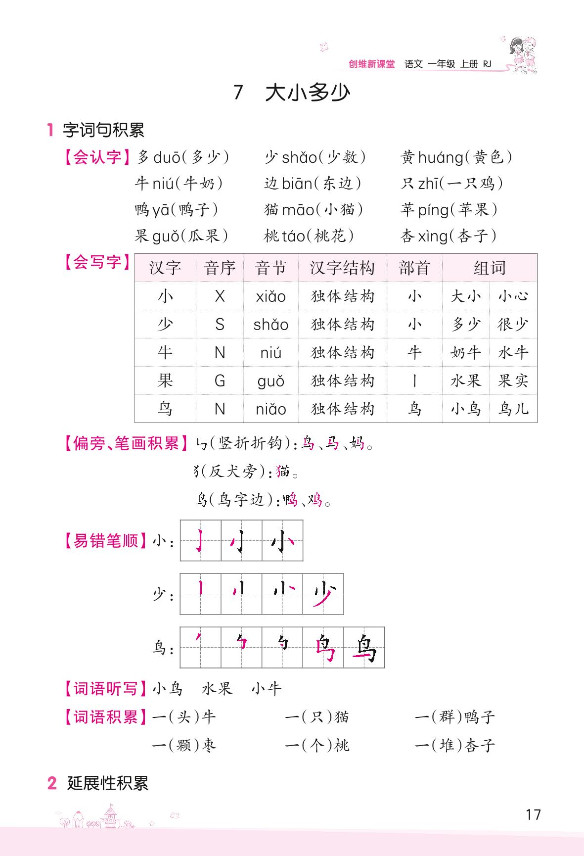 2022上册一年级语文人教版 第五单元——7 大小多少