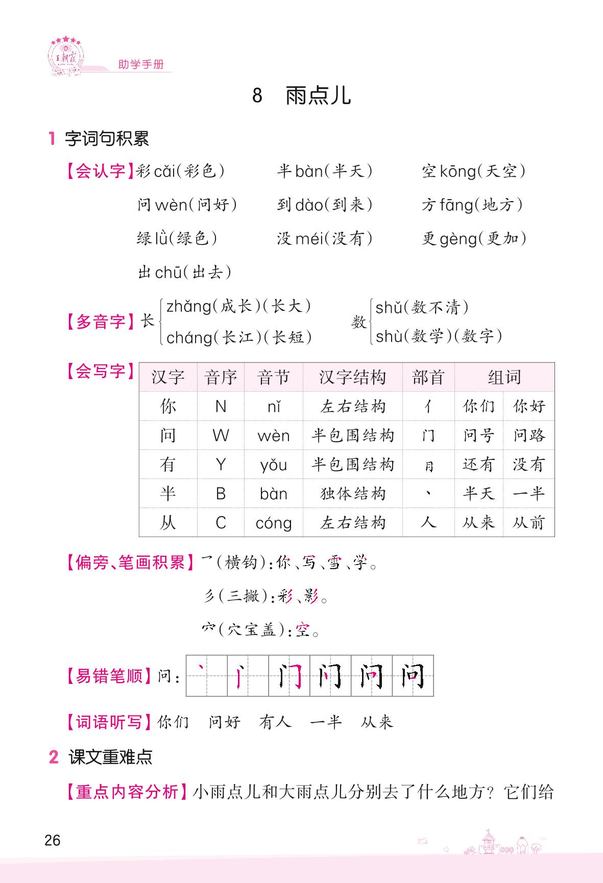 2022上册一年级语文人教版 第六单元——8 雨点儿