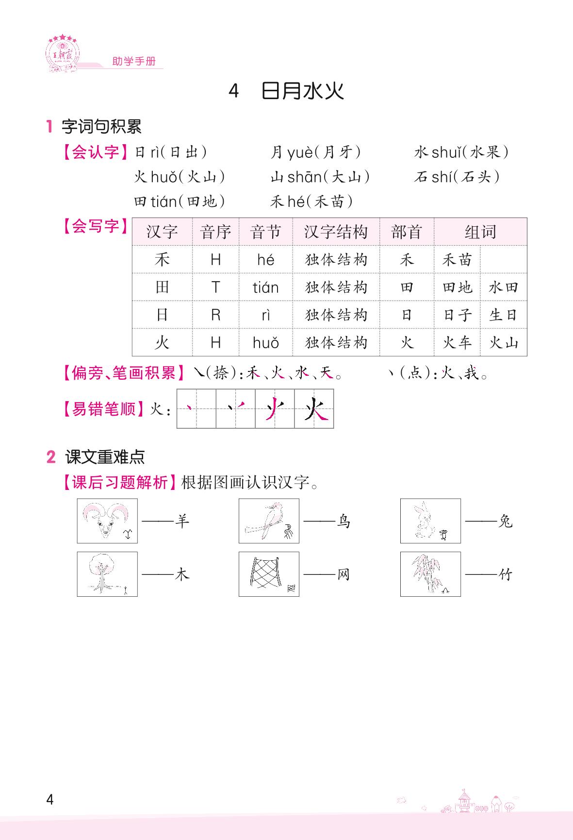2022上册一年级语文人教版 第一单元——4 日月水火
