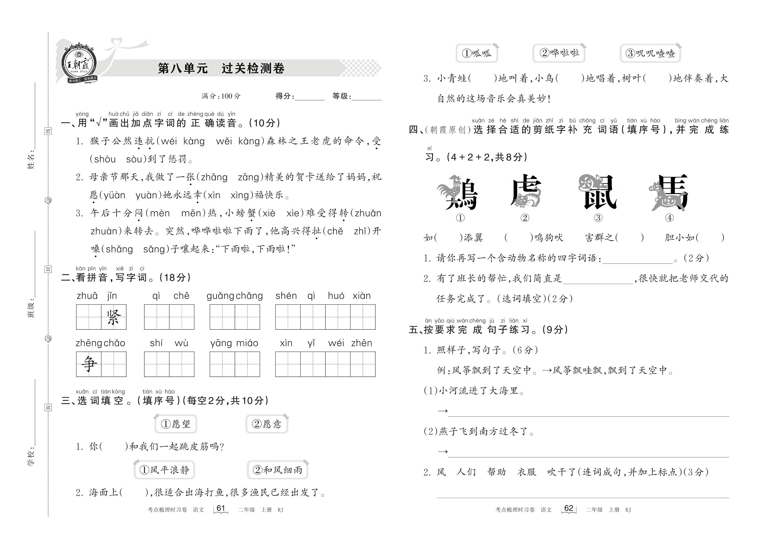 2022上册二年级语文人教版 第八单元 过关检测卷
