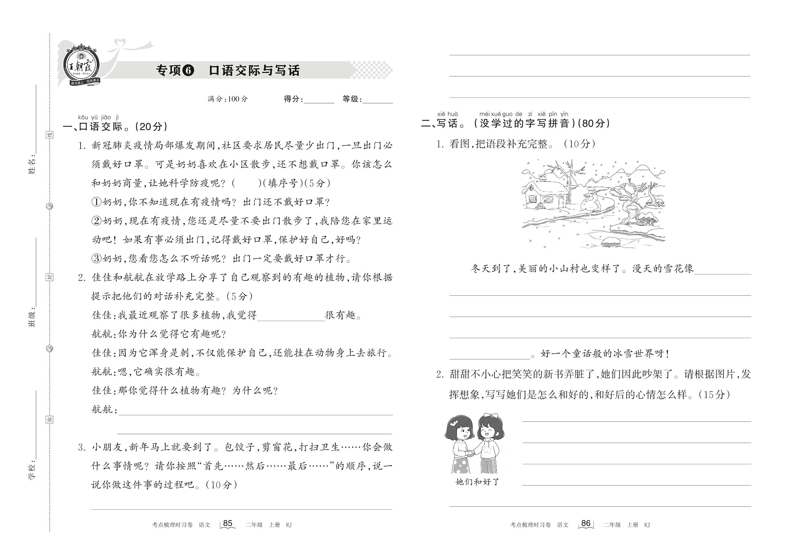 2022上册二年级语文人教版 专项6 口语交际与写话