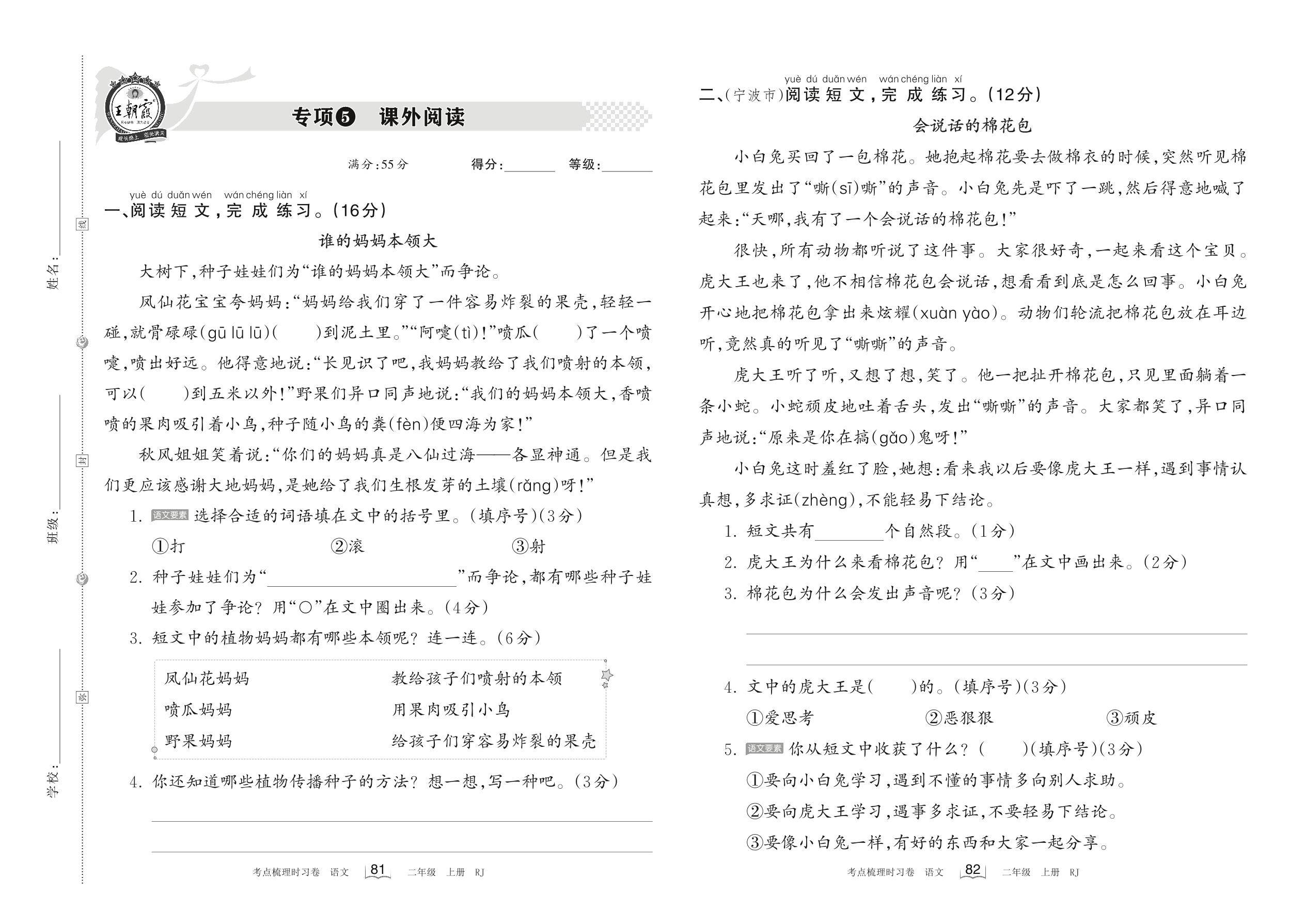 2022上册二年级语文人教版 专项5 课外阅读