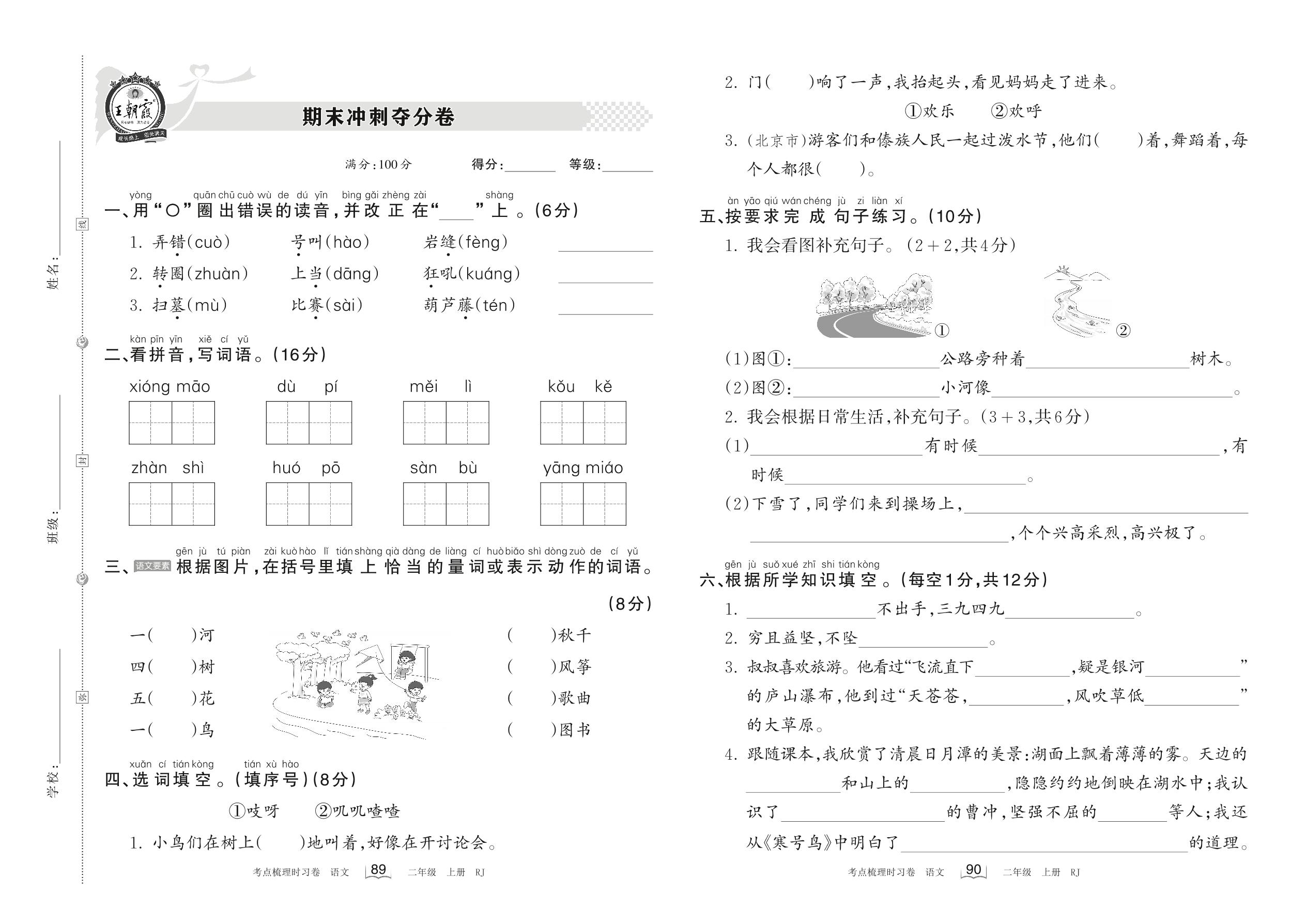 2022上册二年级语文人教版 期末冲刺夺分卷