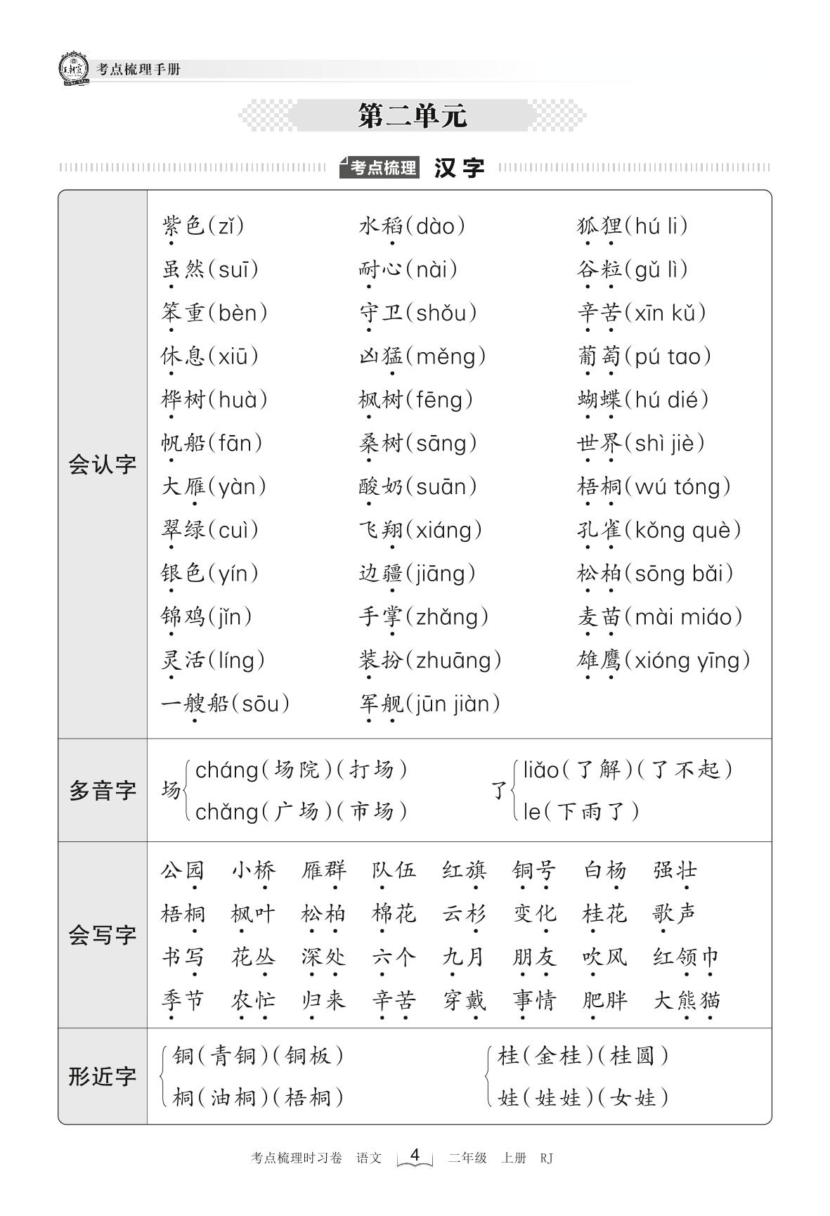 2022上册二年级语文人教版 考点梳理手册——第二单元