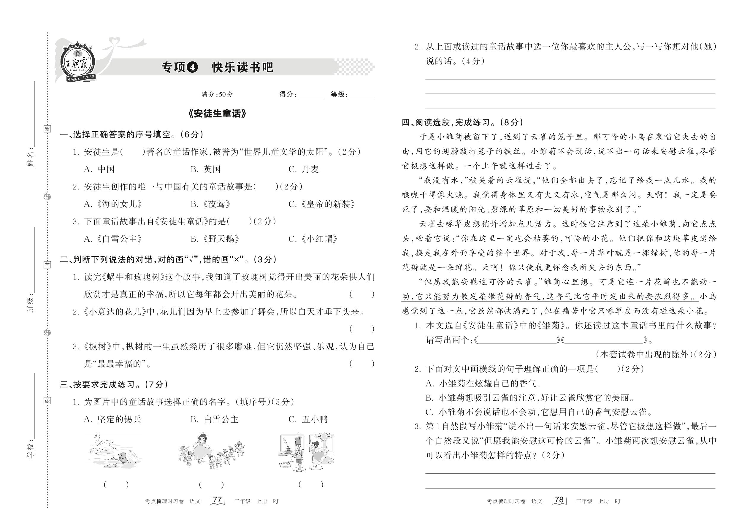2022上册三年级语文人教版 专项4 快乐读书吧