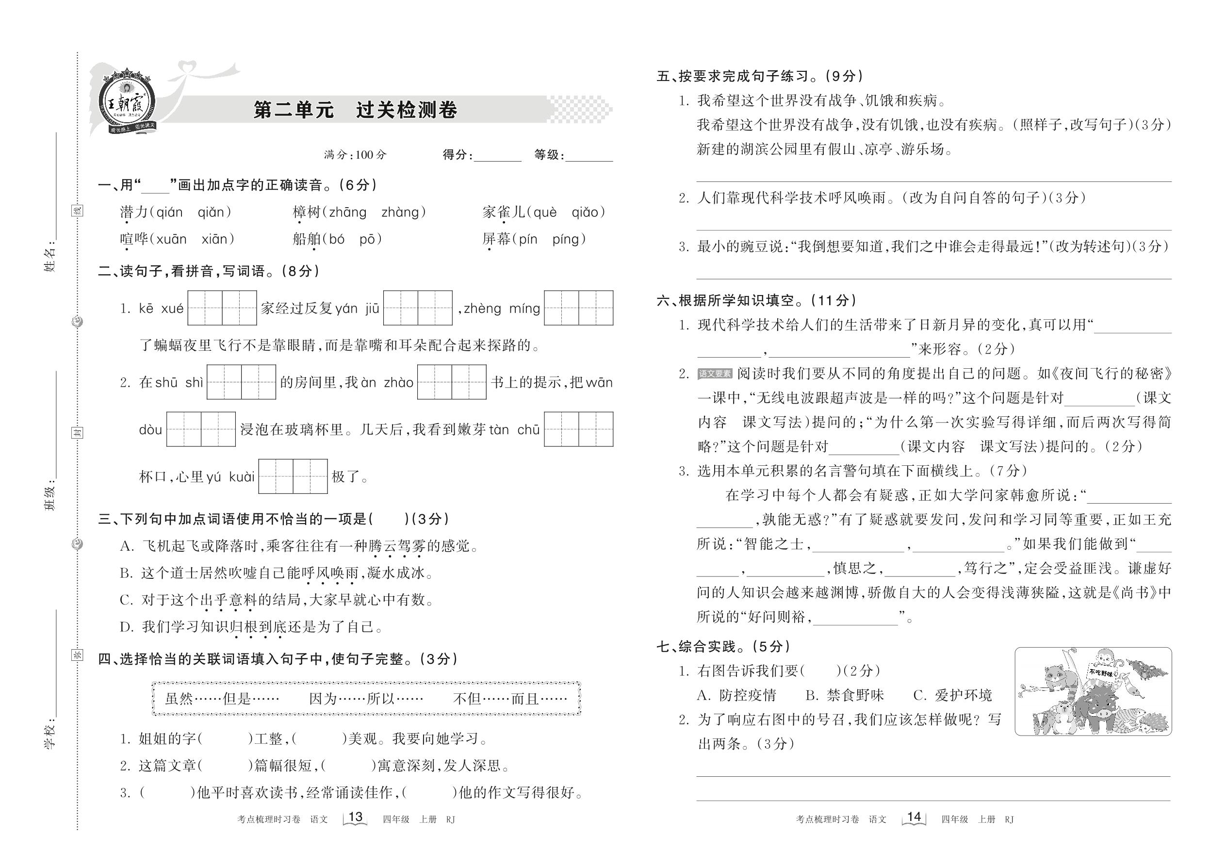 2022上册四年级语文人教版 第二单元 过关检测卷