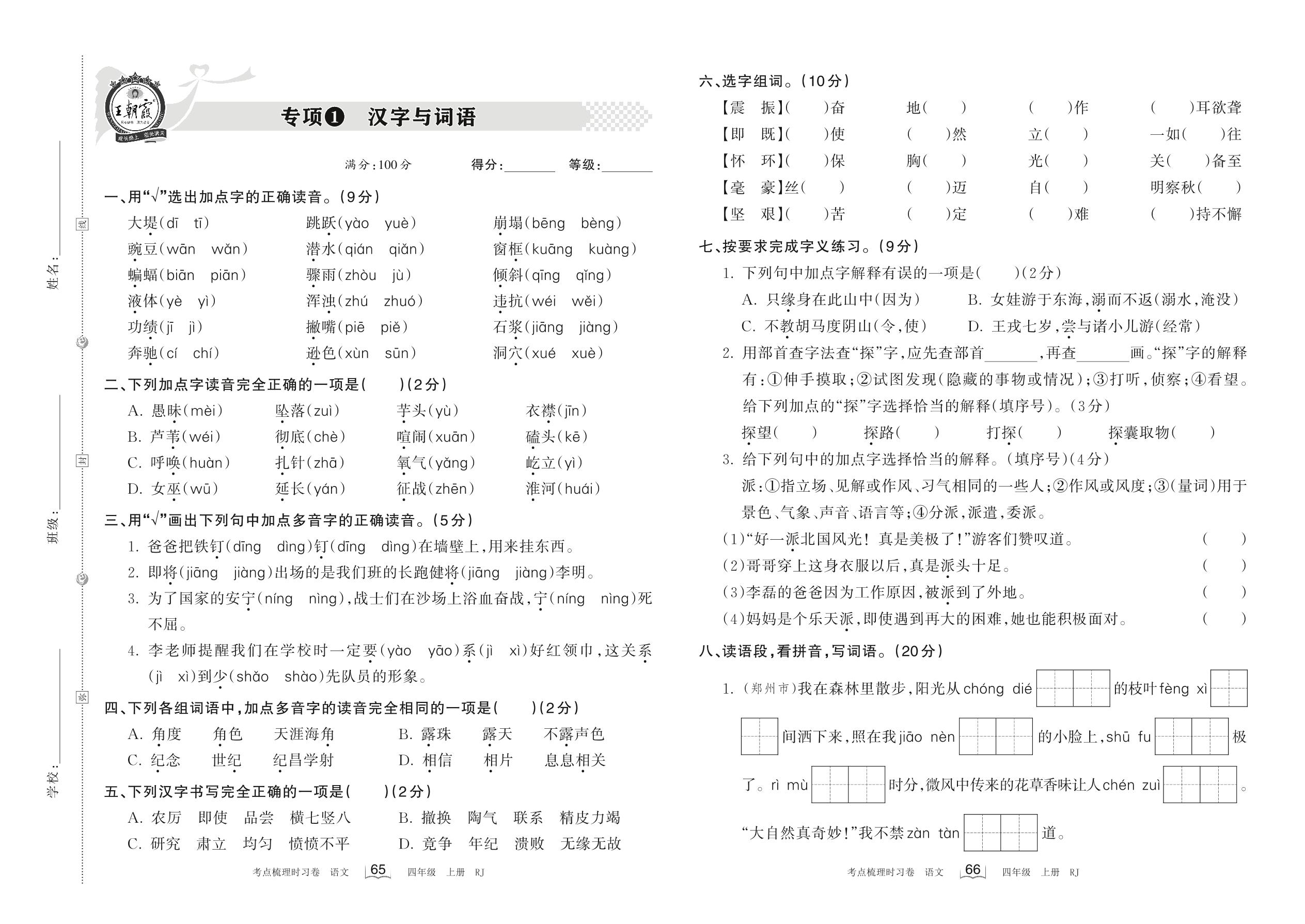 2022上册四年级语文人教版 专项1 汉字与词语
