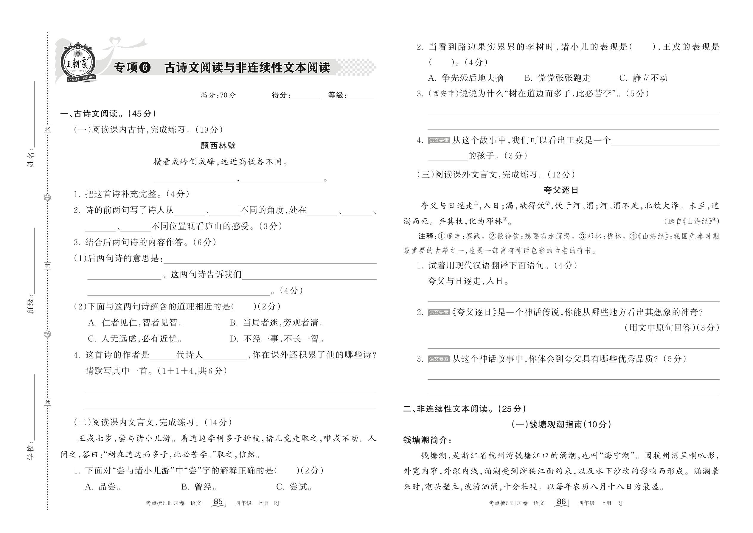 2022上册四年级语文人教版 专项6 古诗文阅读与非连续性文本阅读