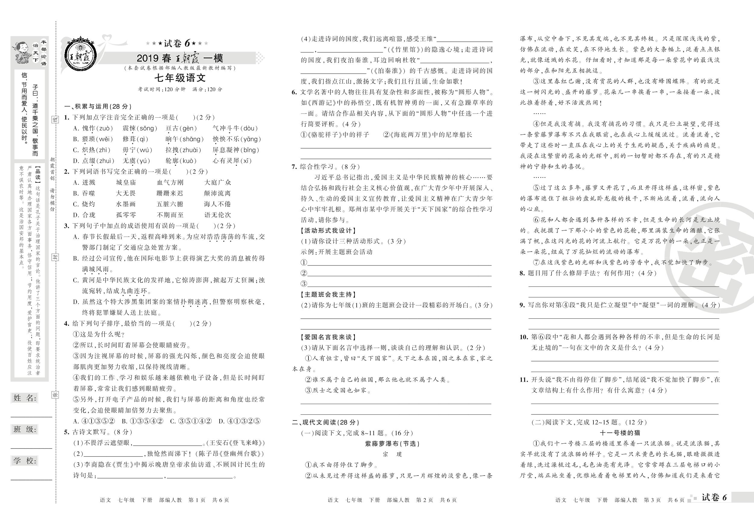 王朝霞期末模拟卷七年级下册语文(人教版)_R21080253737【6】