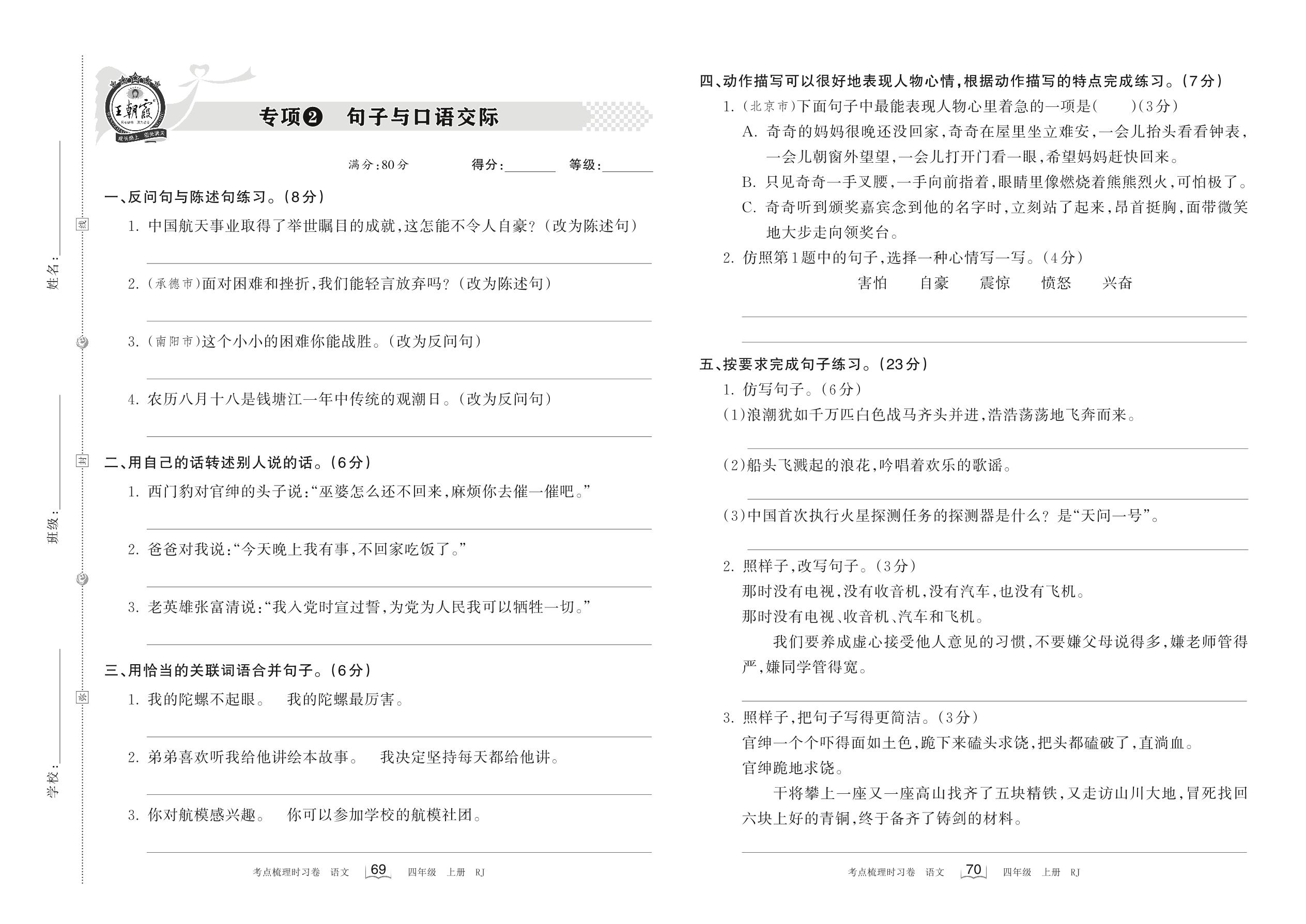 2022上册四年级语文人教版 专项2 句子与口语交际