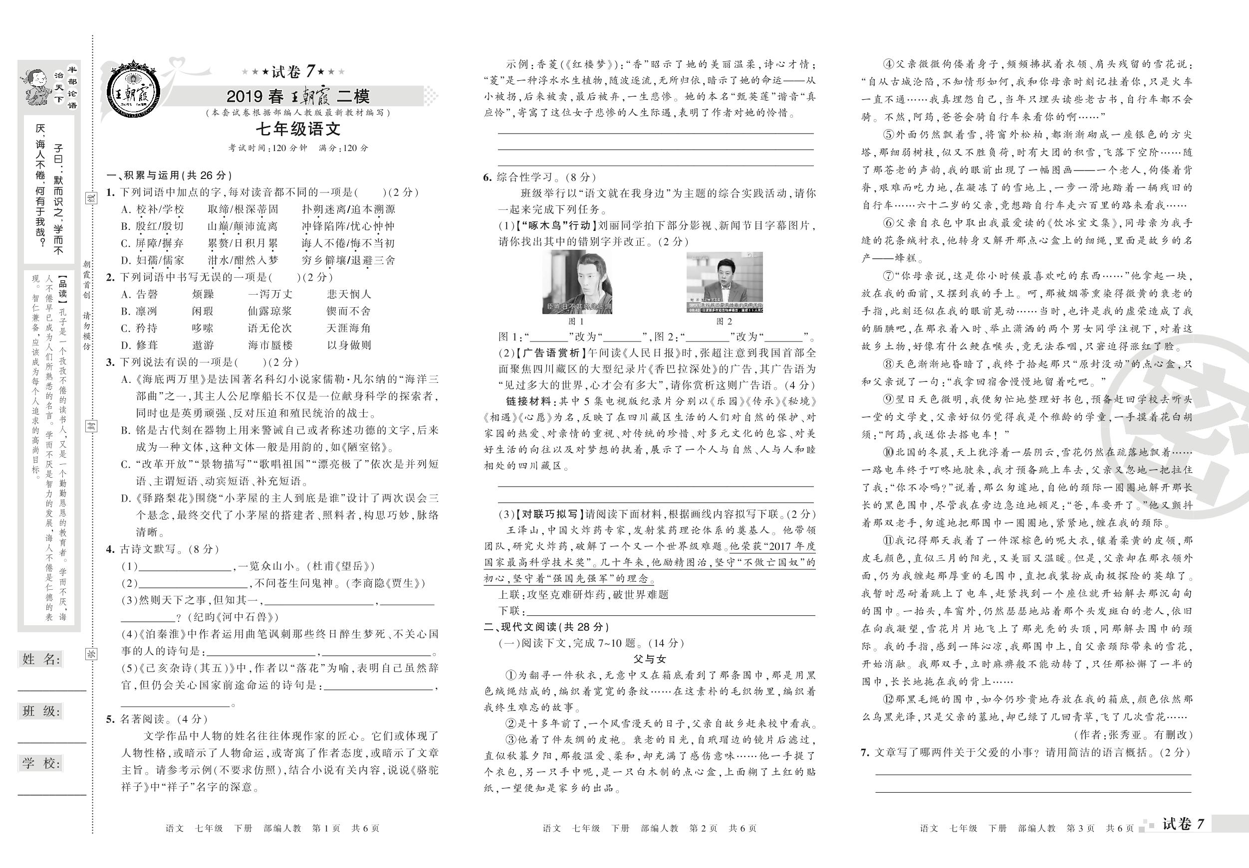 王朝霞期末模拟卷七年级下册语文(人教版)_R21080253747【7】