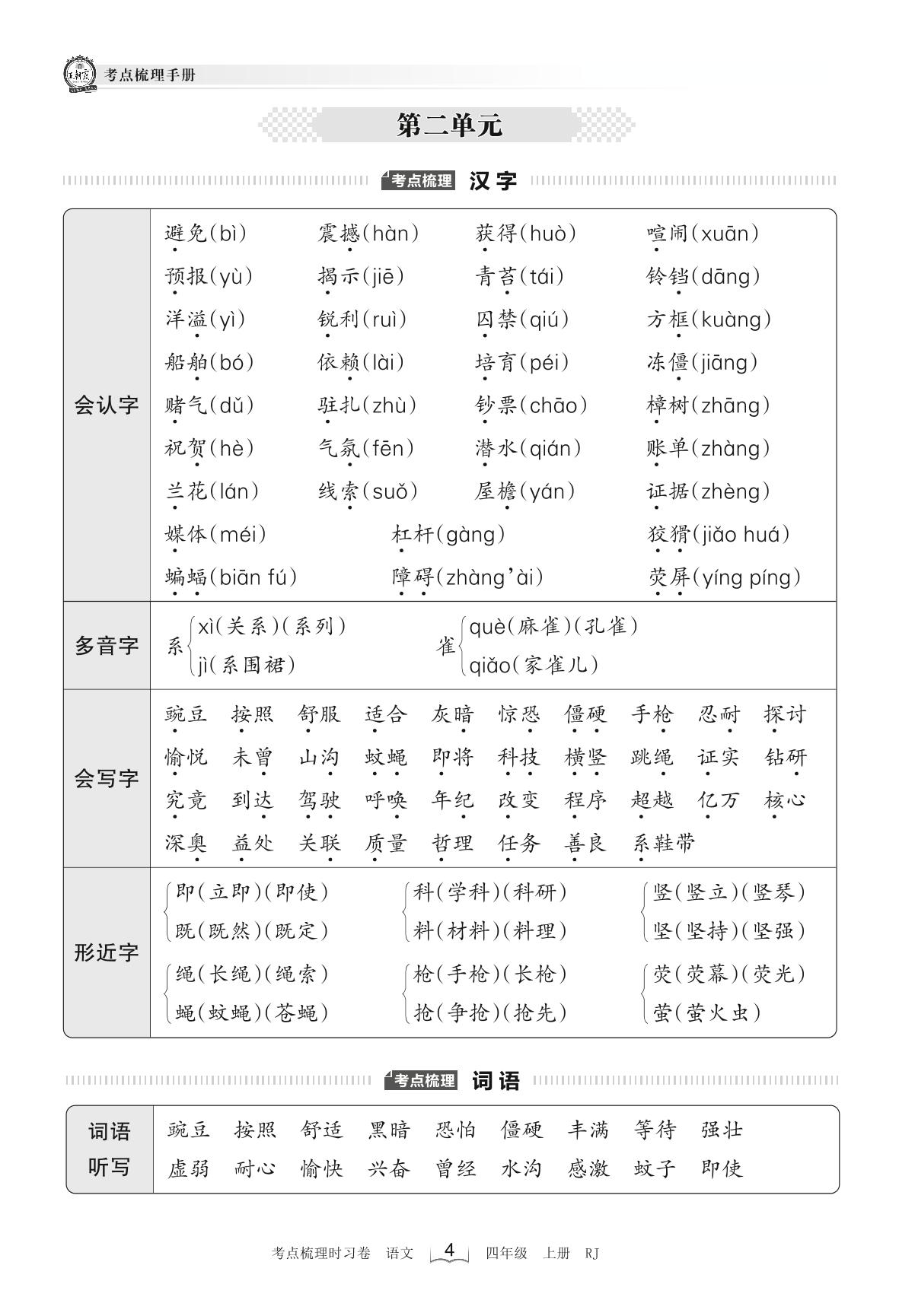 2022上册四年级语文人教版 考点梳理手册——第二单元