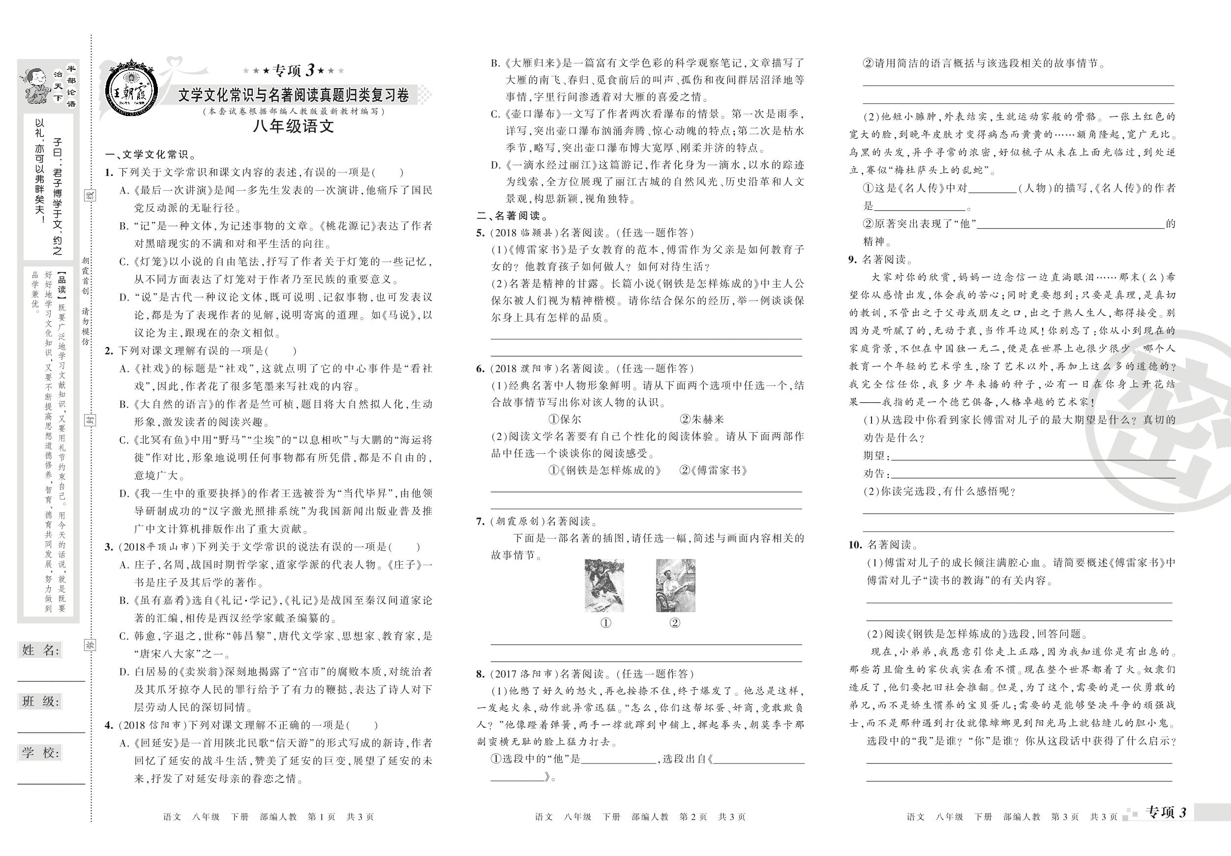 王朝霞期末专项卷——文学文化常识与名著阅读、综合性学习真题归类复习卷八年级下册语文(人教版)_R21080253818【0】