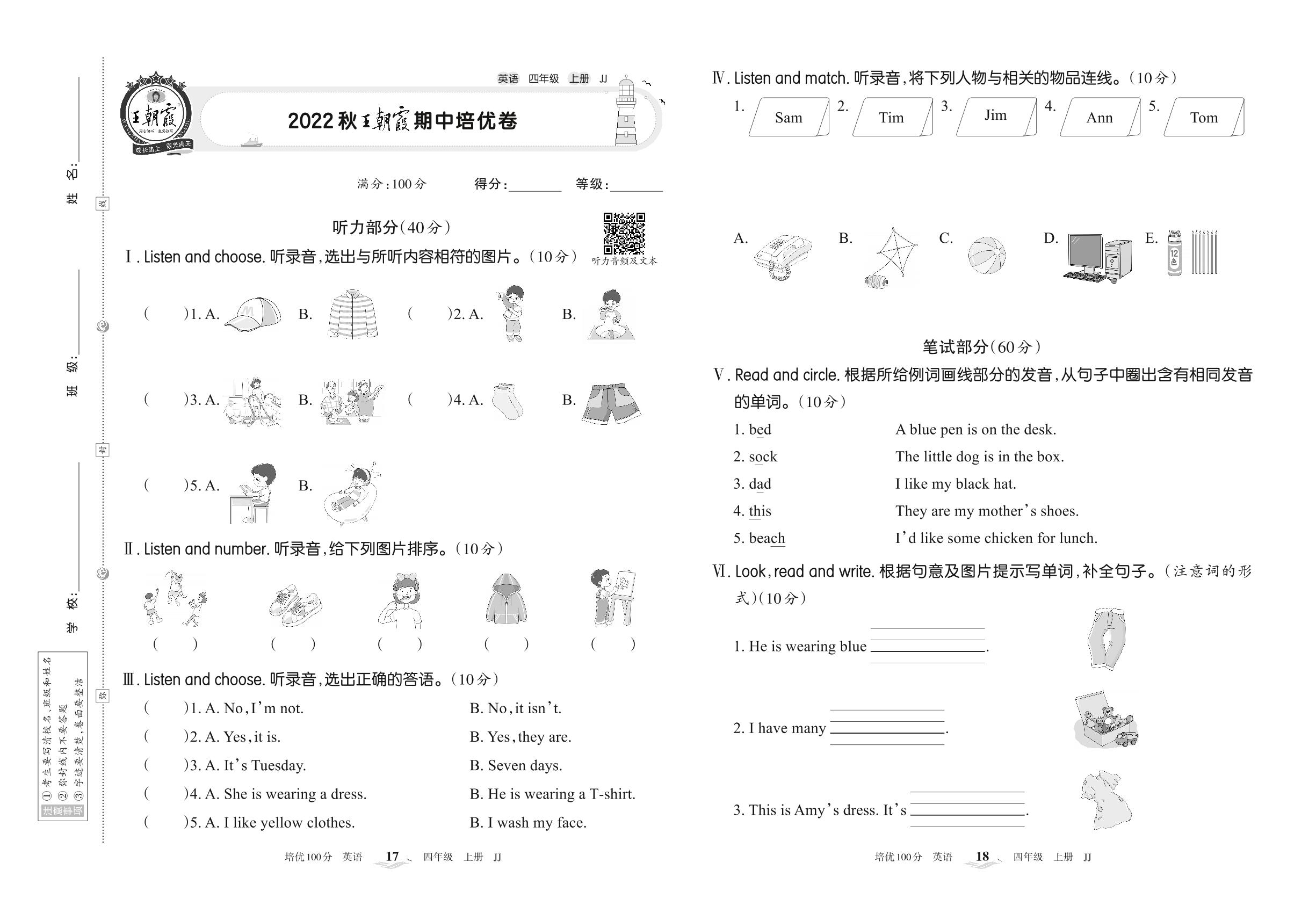 2022上册四年级英语冀教版 2022秋王朝霞期中培优卷