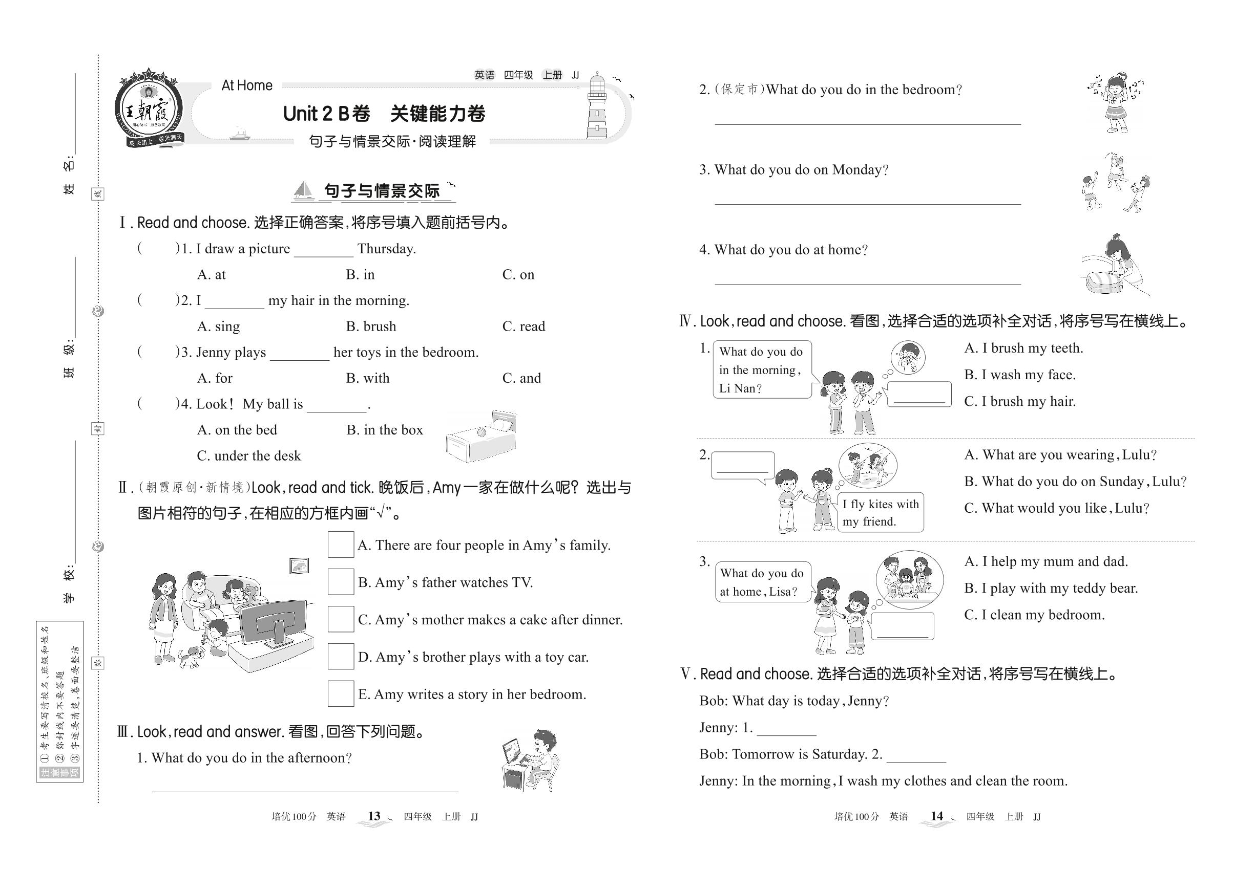 2022上册四年级英语冀教版 Unit 2 B卷 关键能力卷