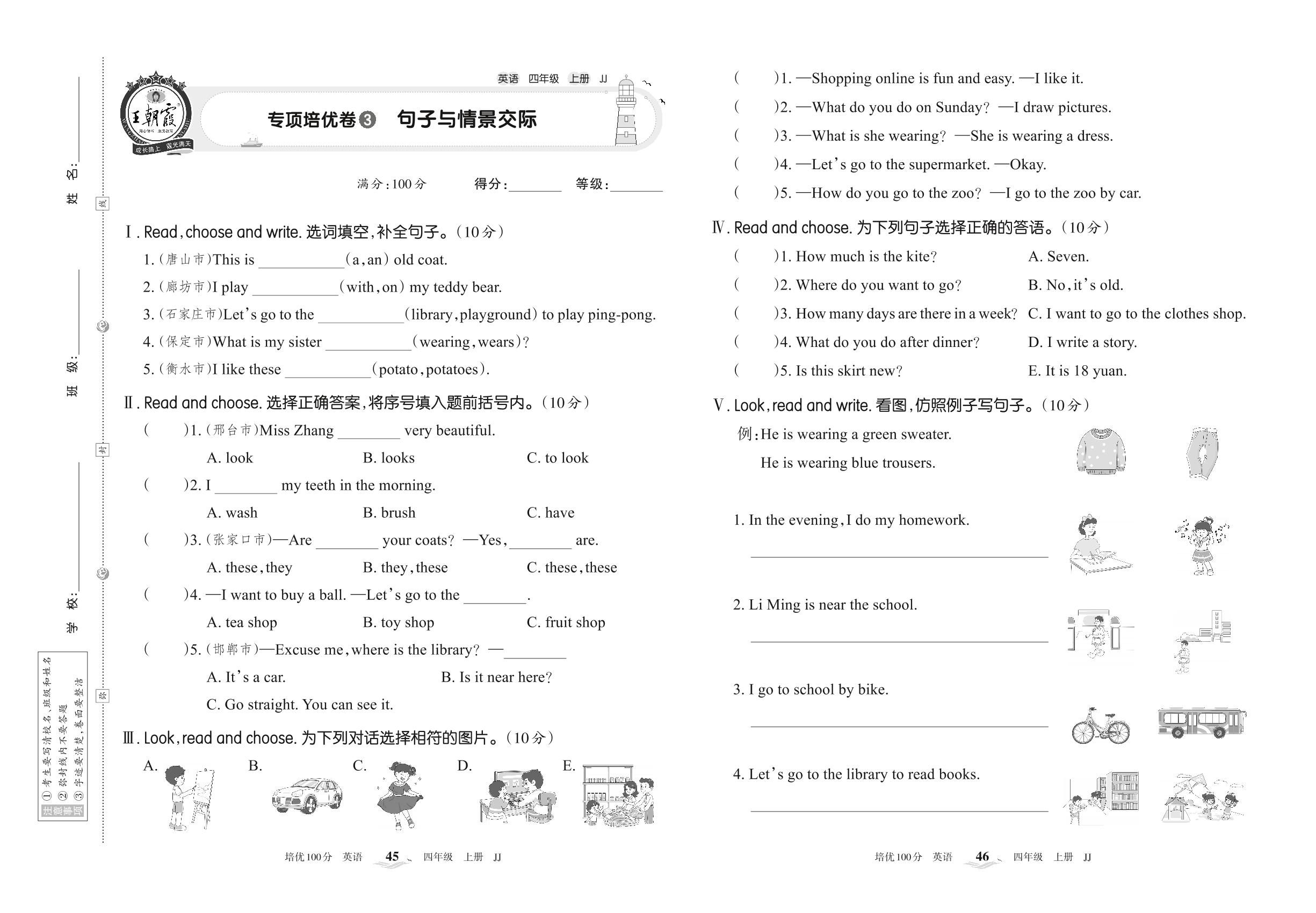 2022上册四年级英语冀教版 专项培优卷3 句子与情景交际