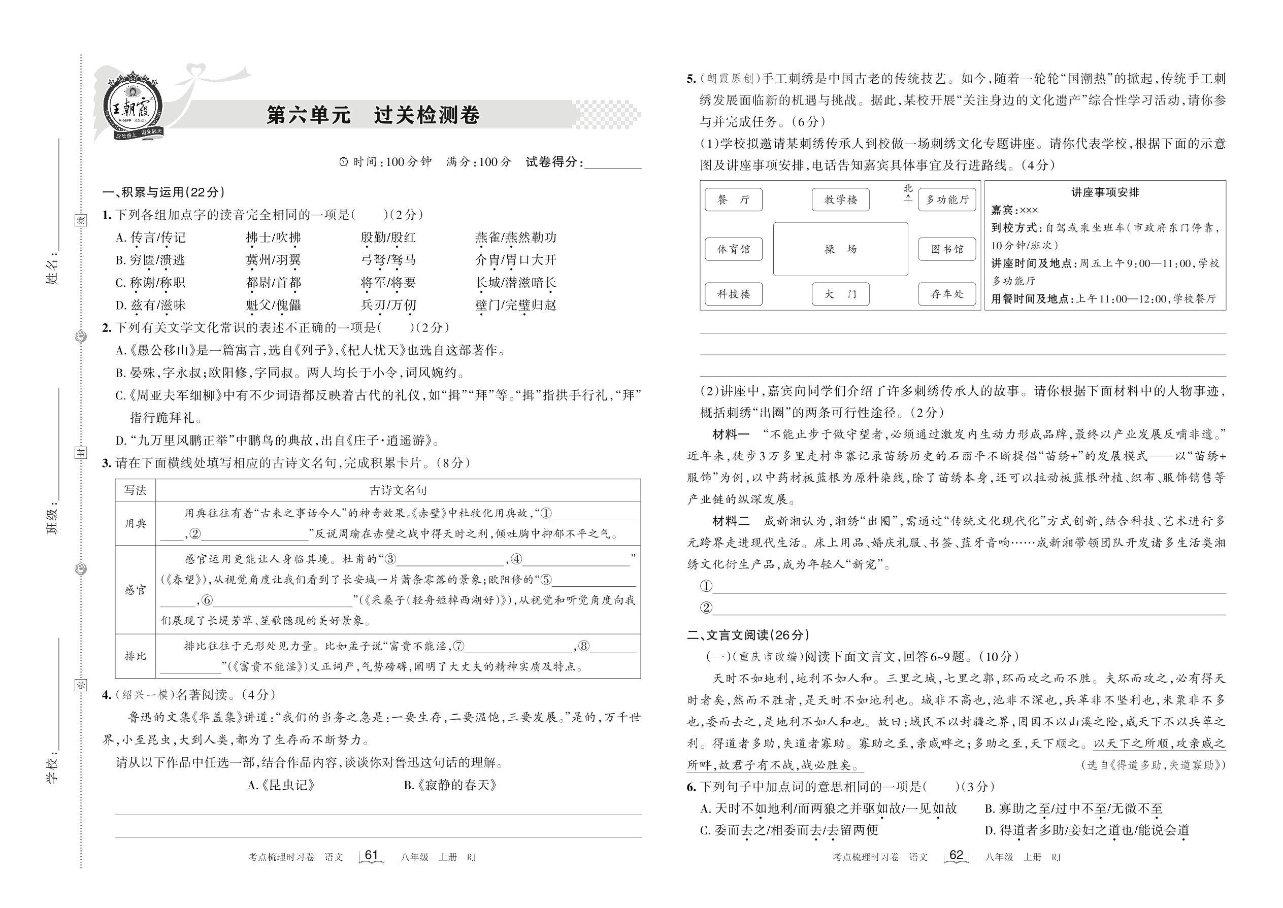 2022上册八年级语文人教版 第六单元 过关检测卷