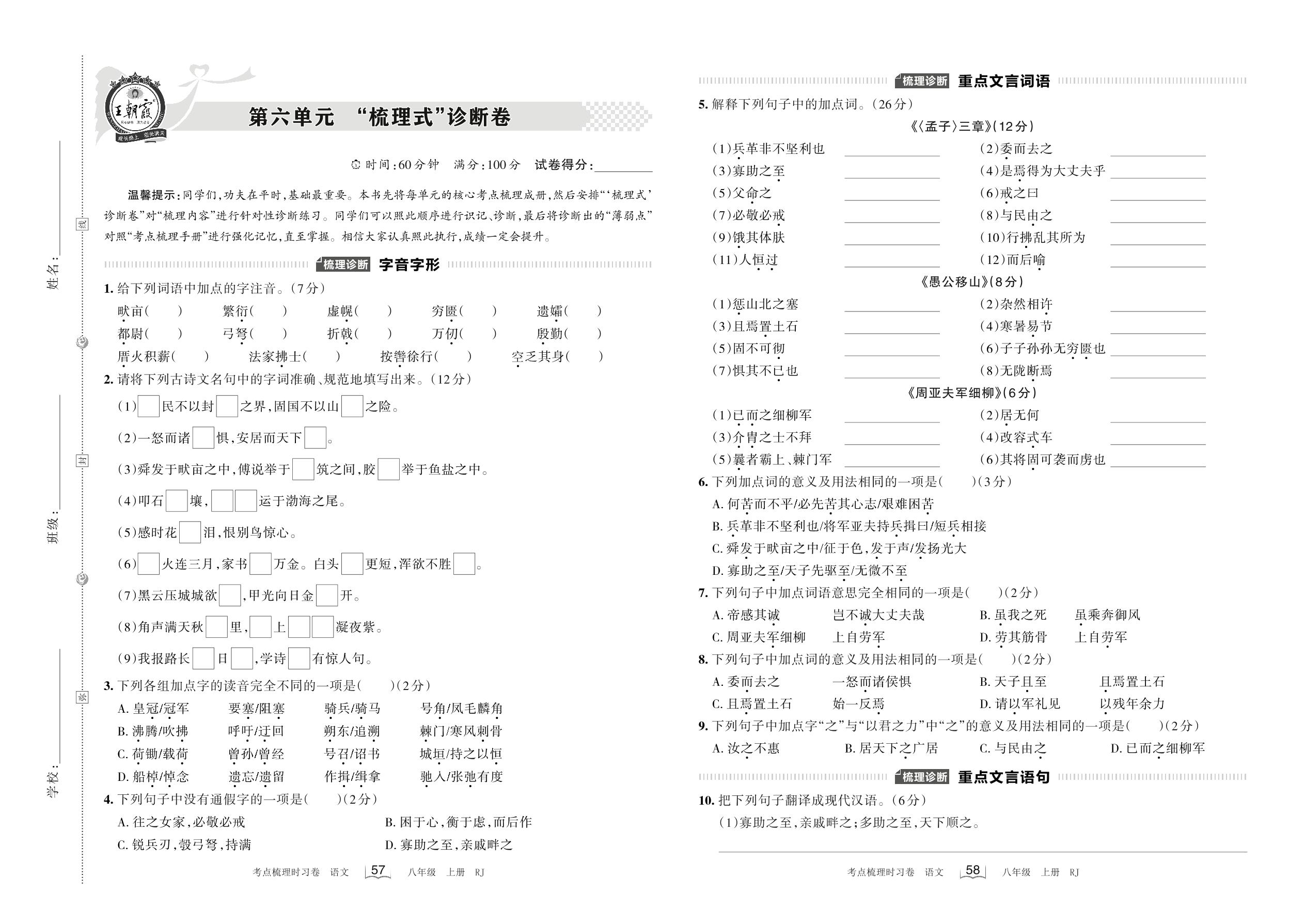2022上册八年级语文人教版 第六单元 “梳理式”诊断卷