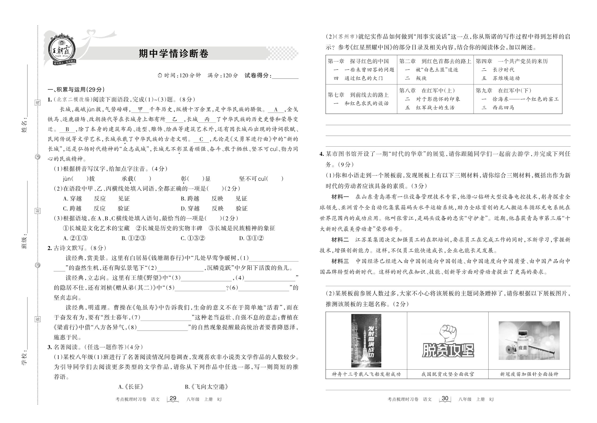 2022上册八年级语文人教版 期中学情诊断卷
