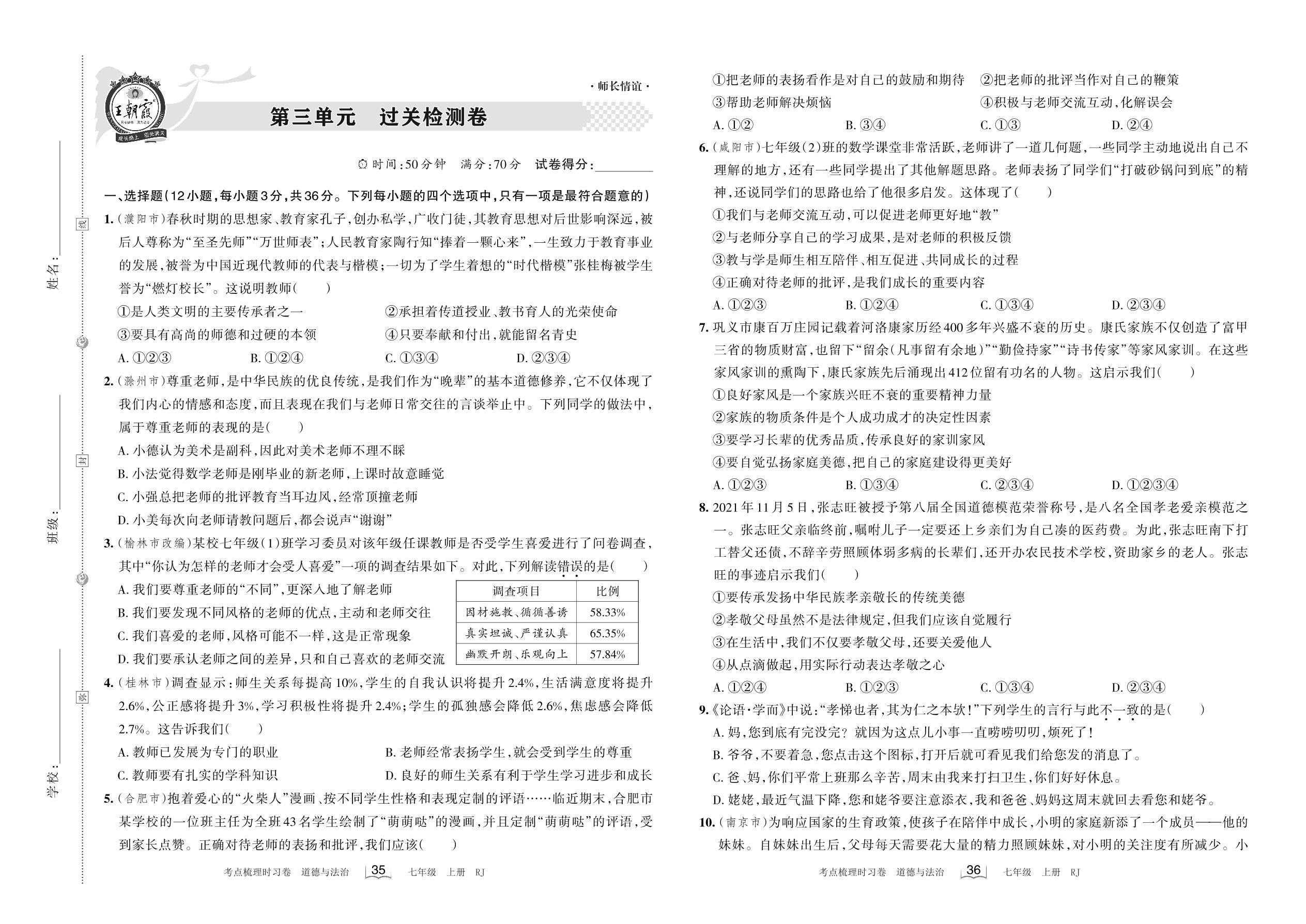 2022上册七年级道德与法治人教版 第三单元 过关检测卷