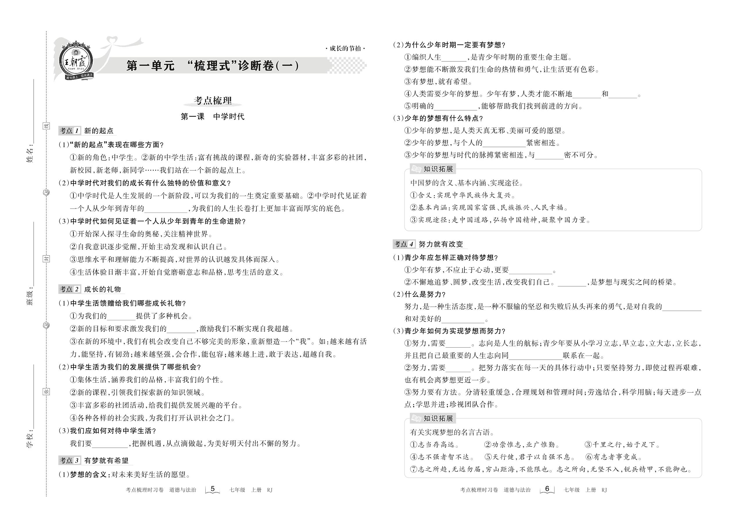 七年级道德与法治人教版上册单元卷