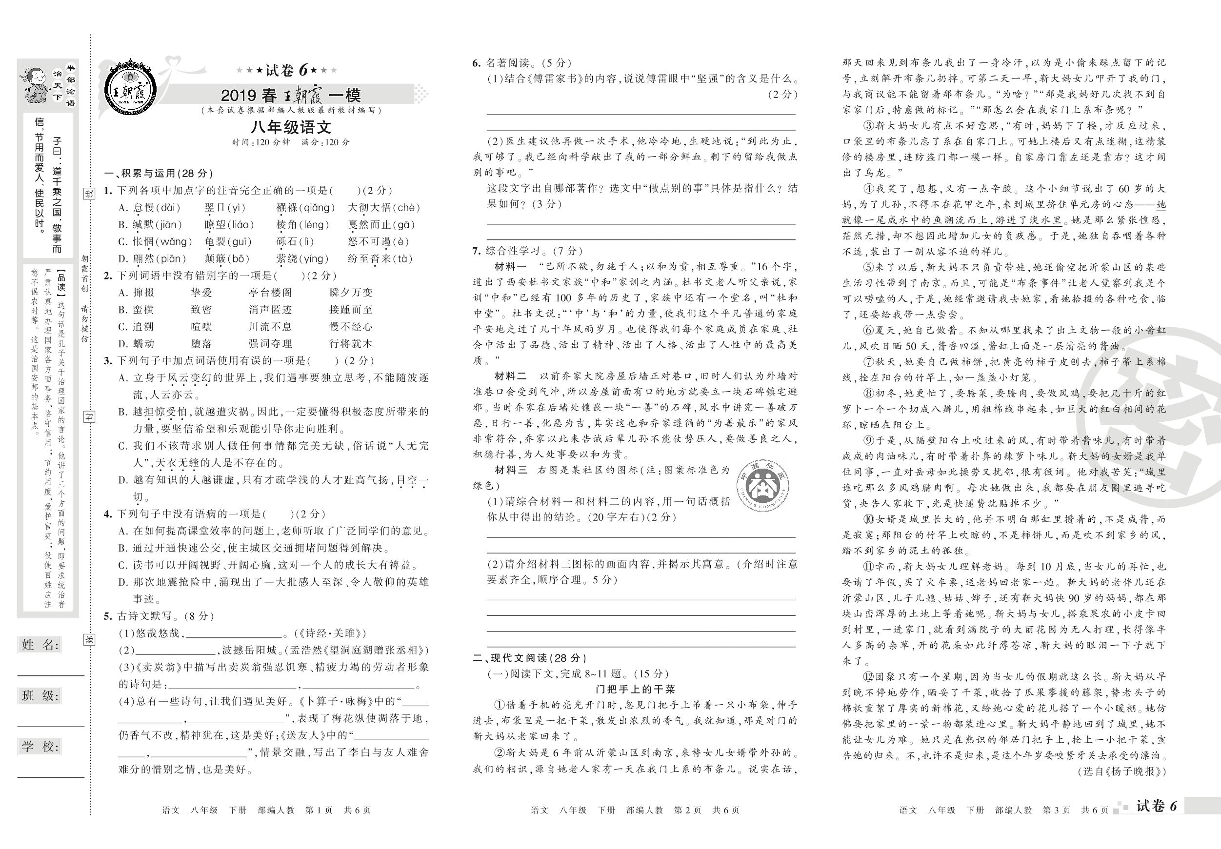 王朝霞期末模拟卷八年级下册语文(人教版)_R21080253940【6】