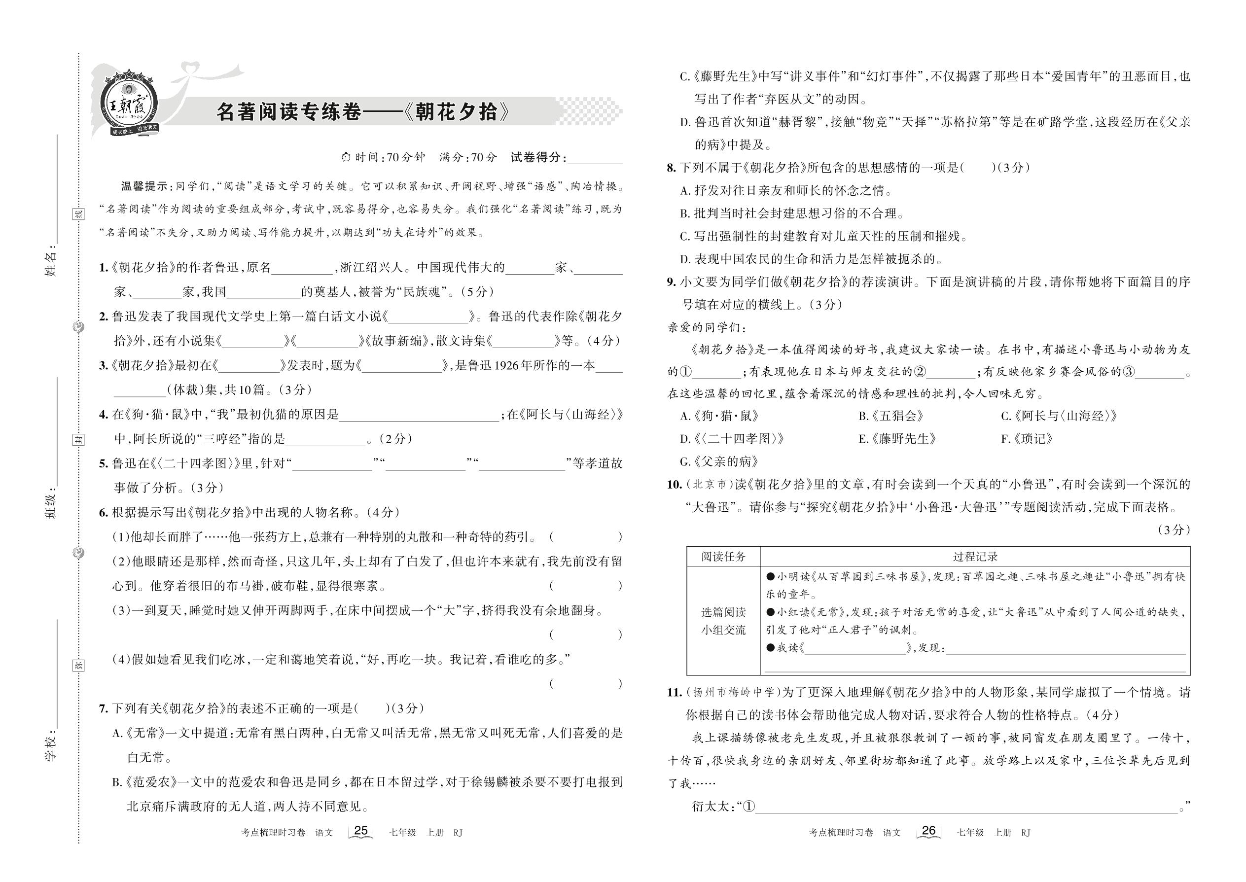 2022上册七年级语文人教版 名著阅读专练卷——《朝花夕拾》
