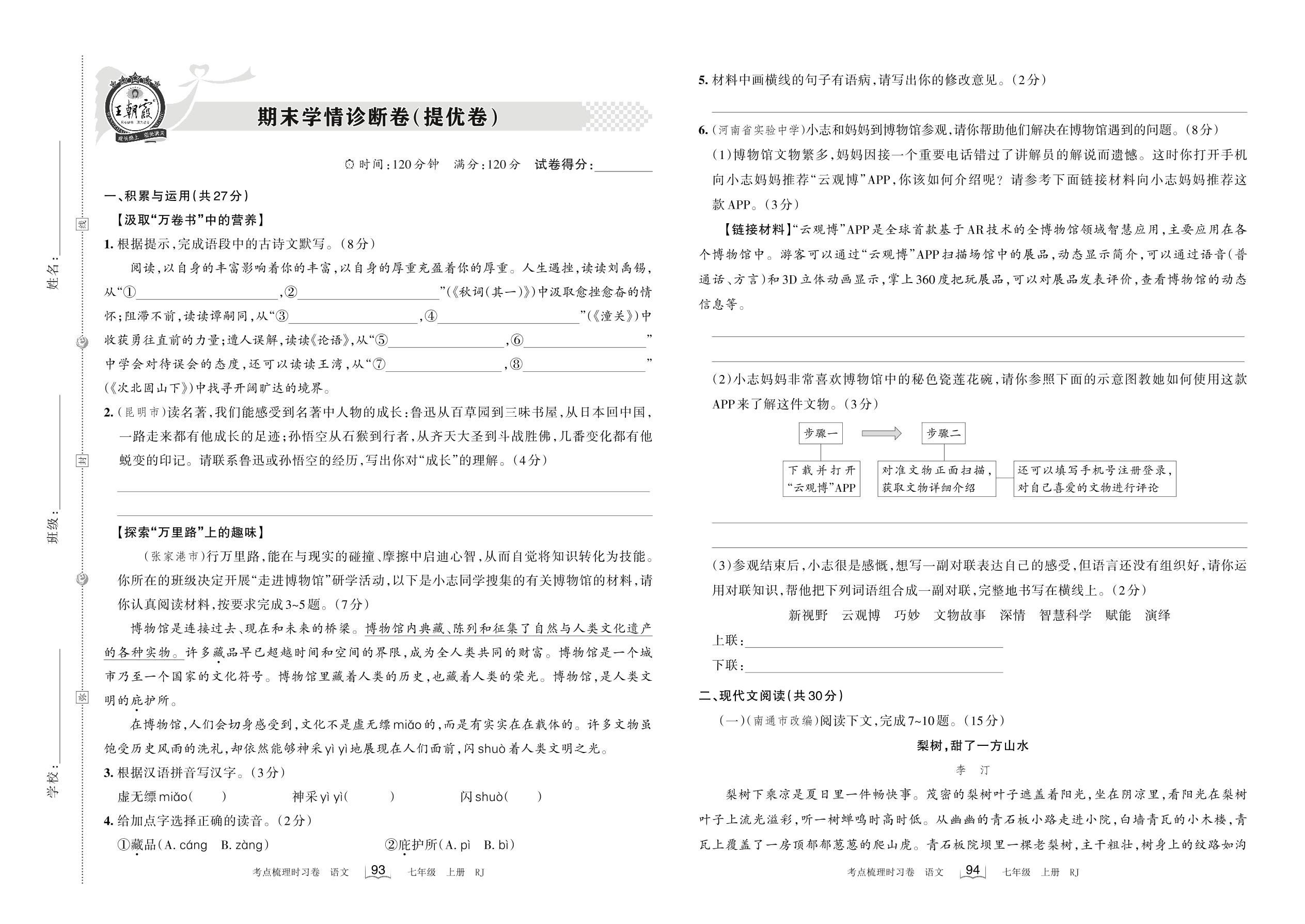 2022上册七年级语文人教版 期末学情诊断卷(提优卷)