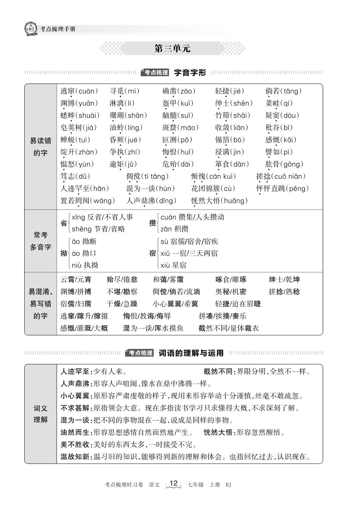 2022上册七年级语文人教版 考点梳理手册——第三单元