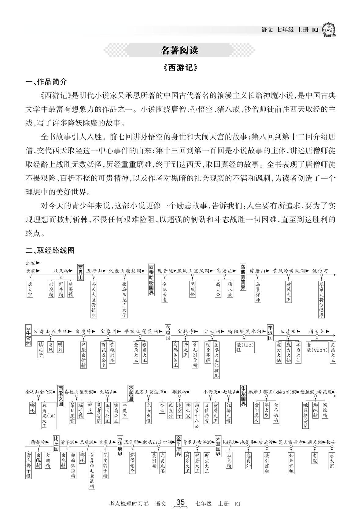 2022上册七年级语文人教版 考点梳理手册——名著阅读《西游记》