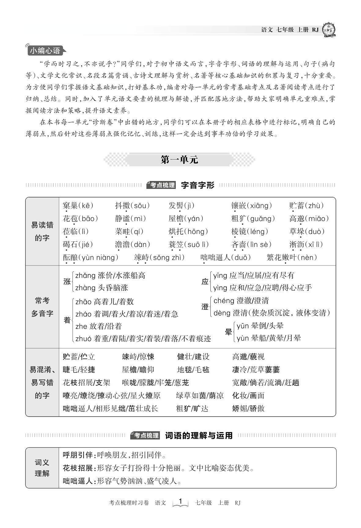 2022上册七年级语文人教版 考点梳理手册——第一单元