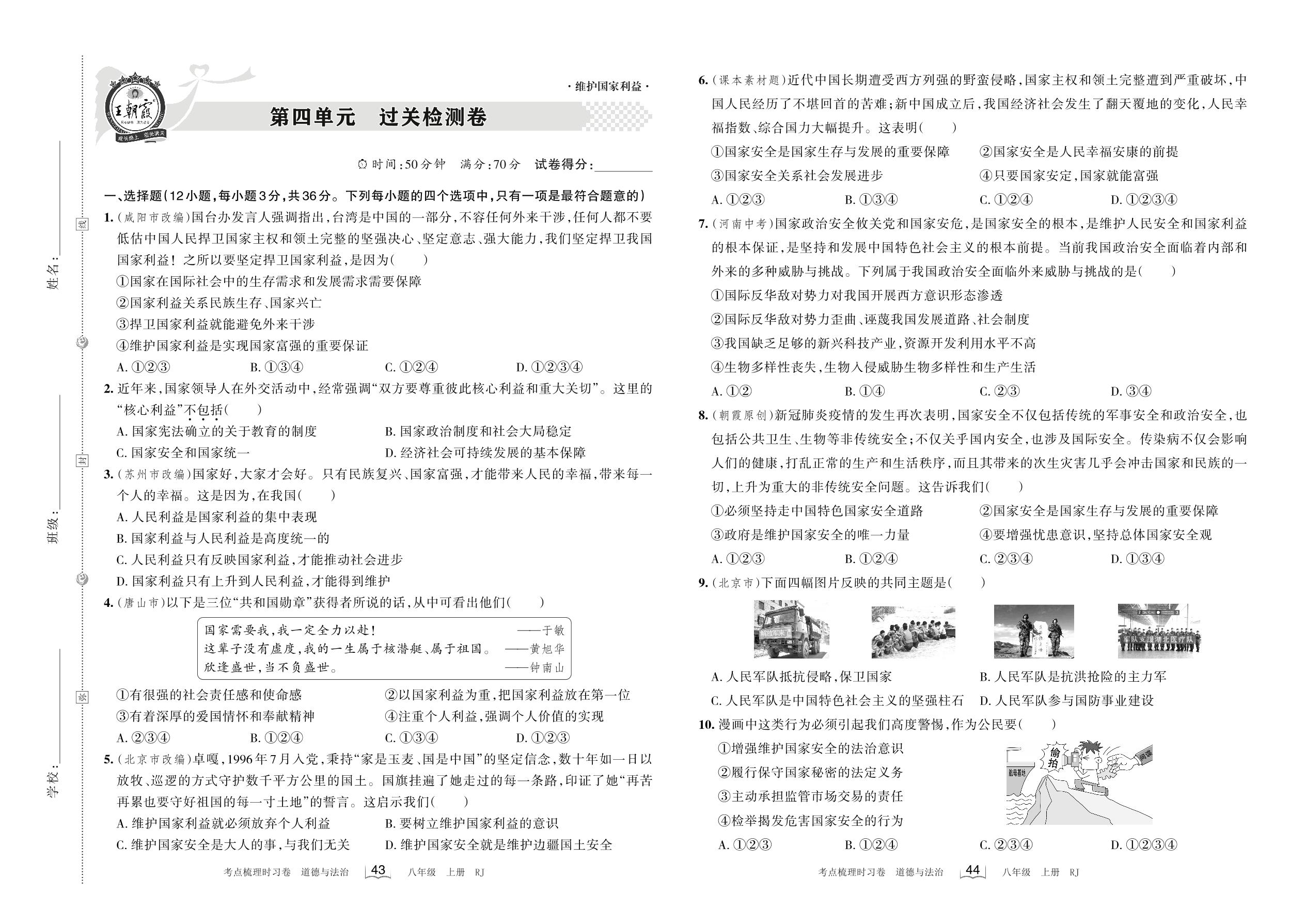 2022上册八年级道德与法治人教版 第四单元 过关检测卷