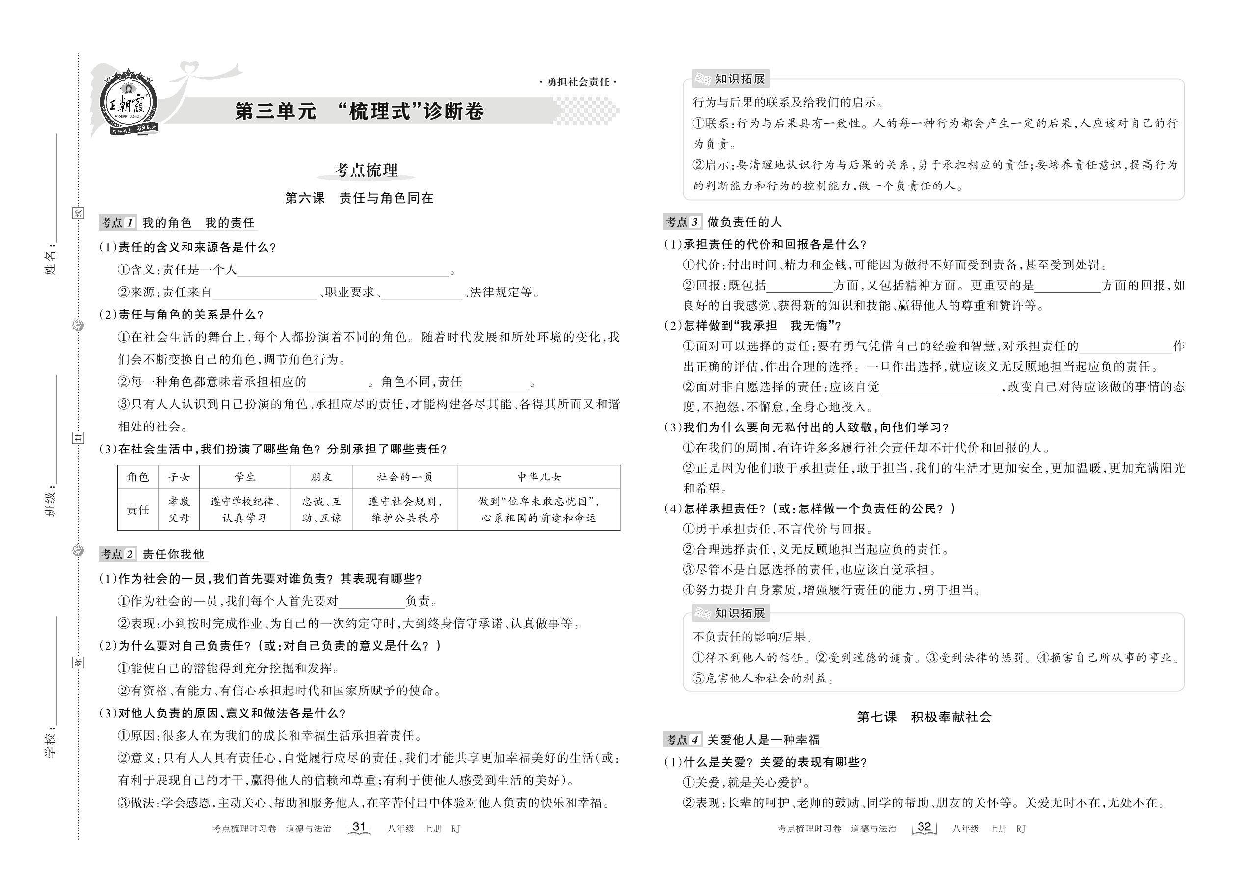 2022上册八年级道德与法治人教版 第三单元 “梳理式”诊断卷
