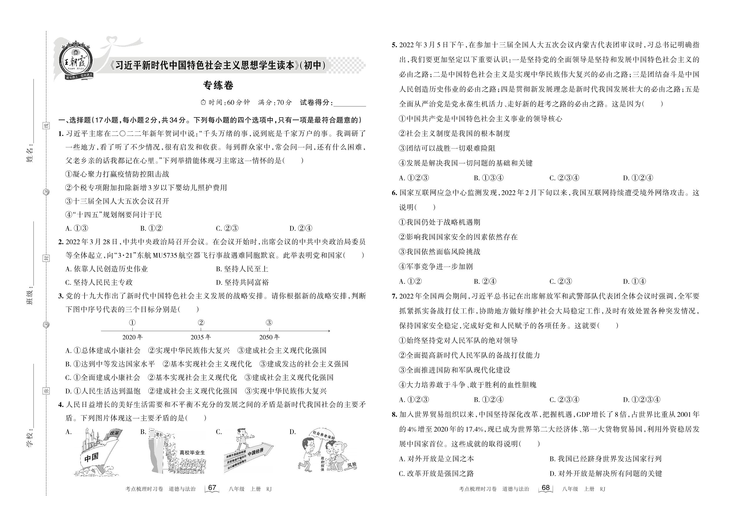 2022上册八年级道德与法治人教版 《习近平新时代中国特色社会主义思想学生读本》专练卷