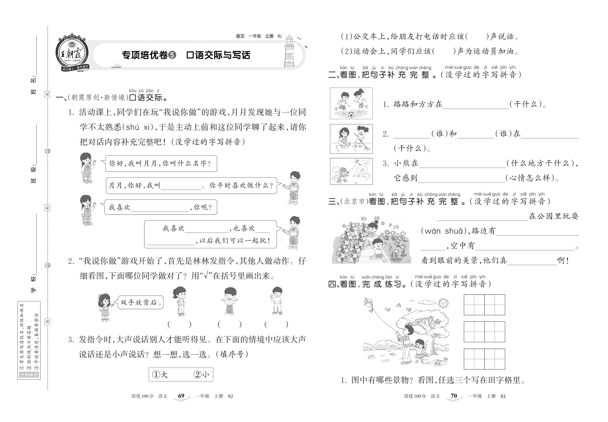 2022上册一年级语文人教版 专项培优卷5 口语交际与写话