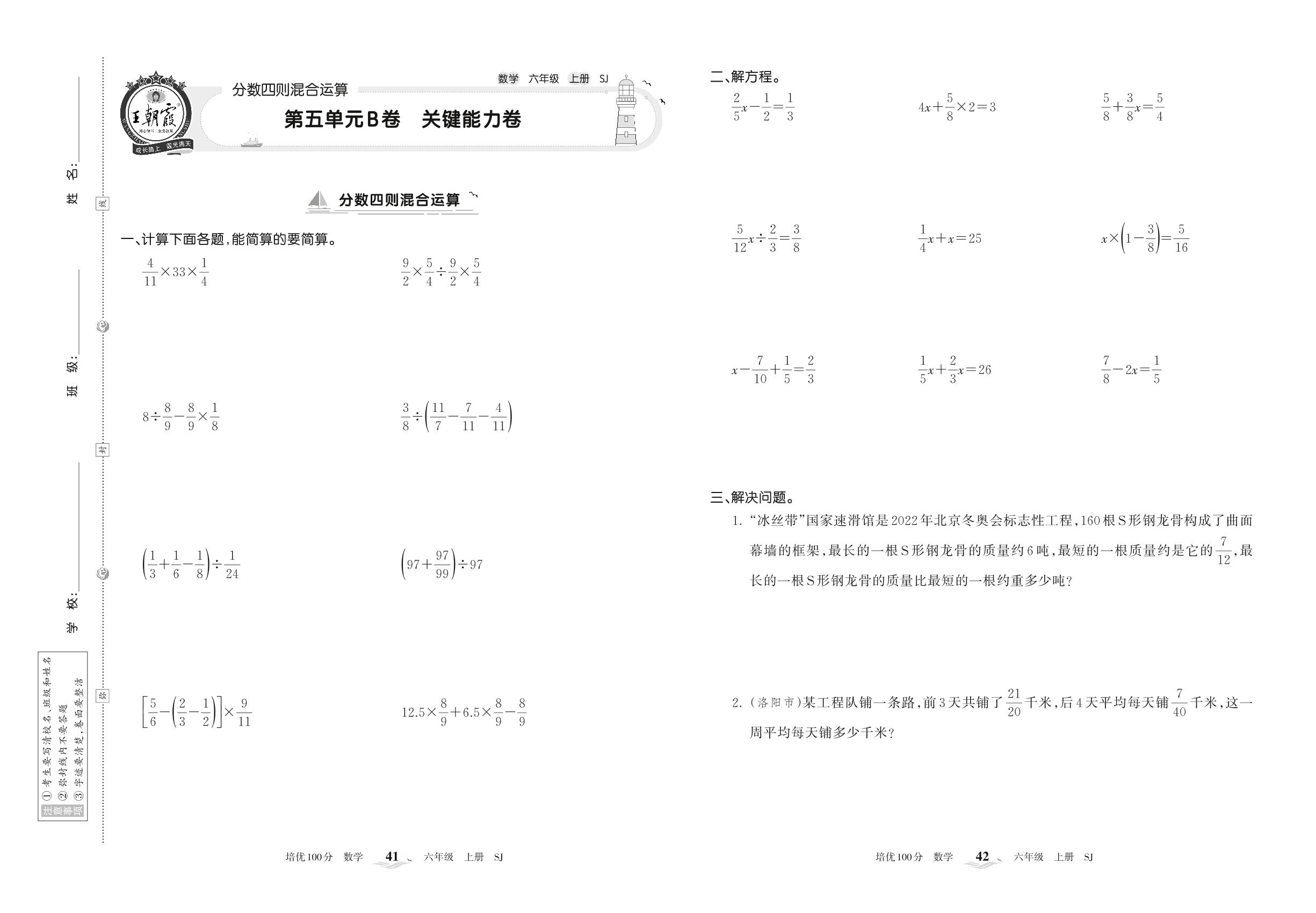 2022上册六年级数学苏教版 第五单元B卷 关键能力卷