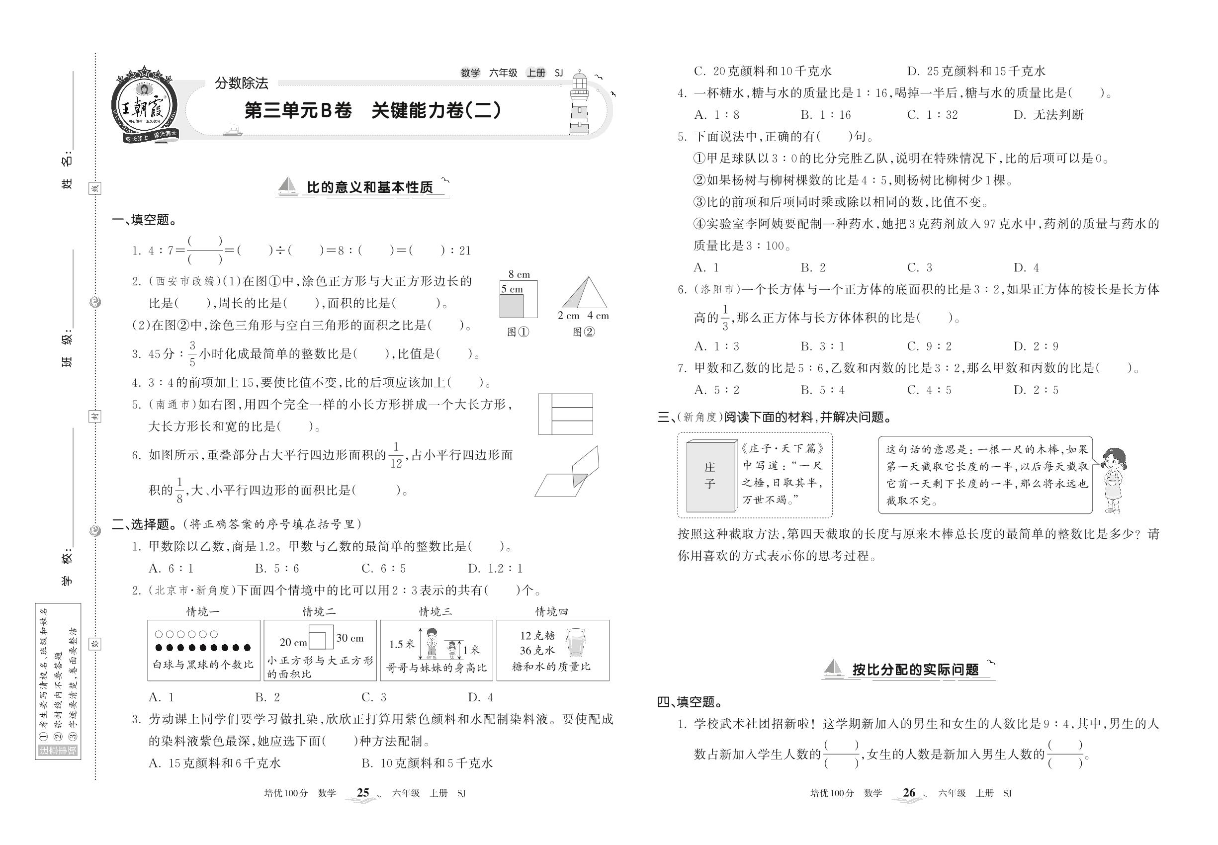 2022上册六年级数学苏教版 第三单元B卷 关键能力卷(二)