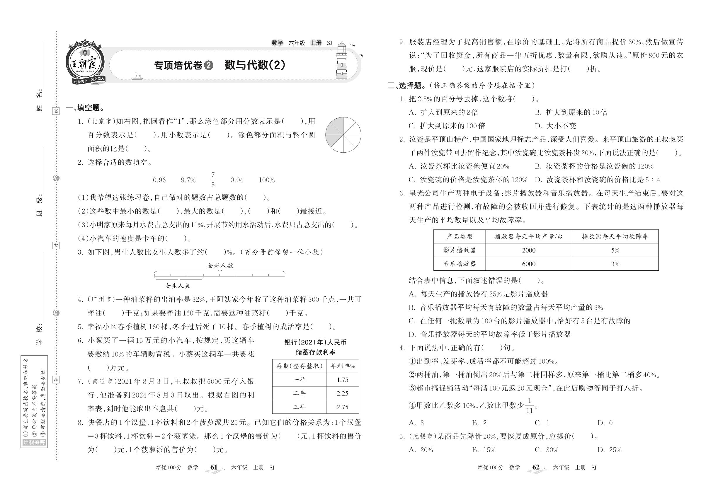 2022上册六年级数学苏教版 专项培优卷2 数与代数(2)