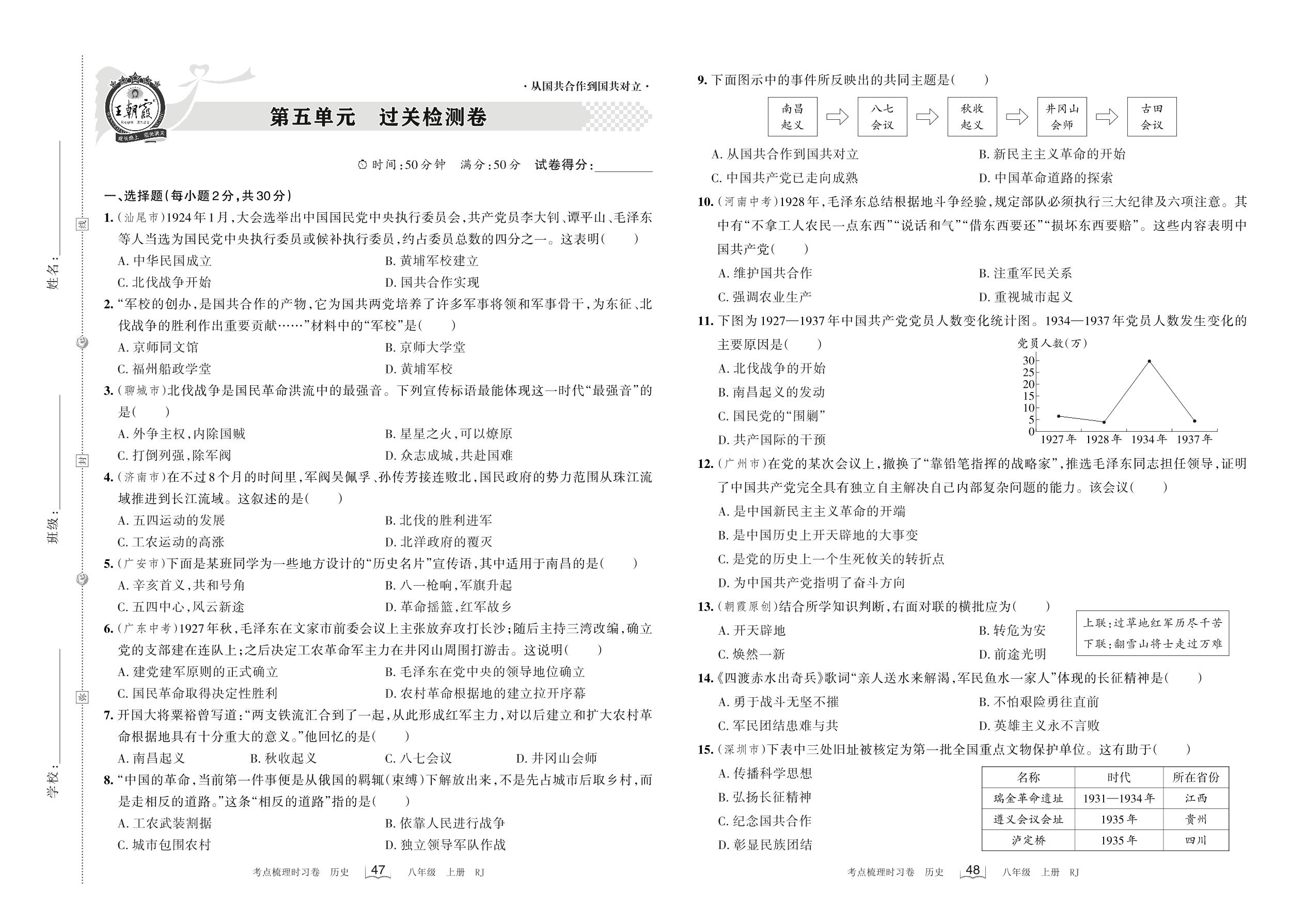 2022上册八年级历史人教版 第五单元 过关检测卷