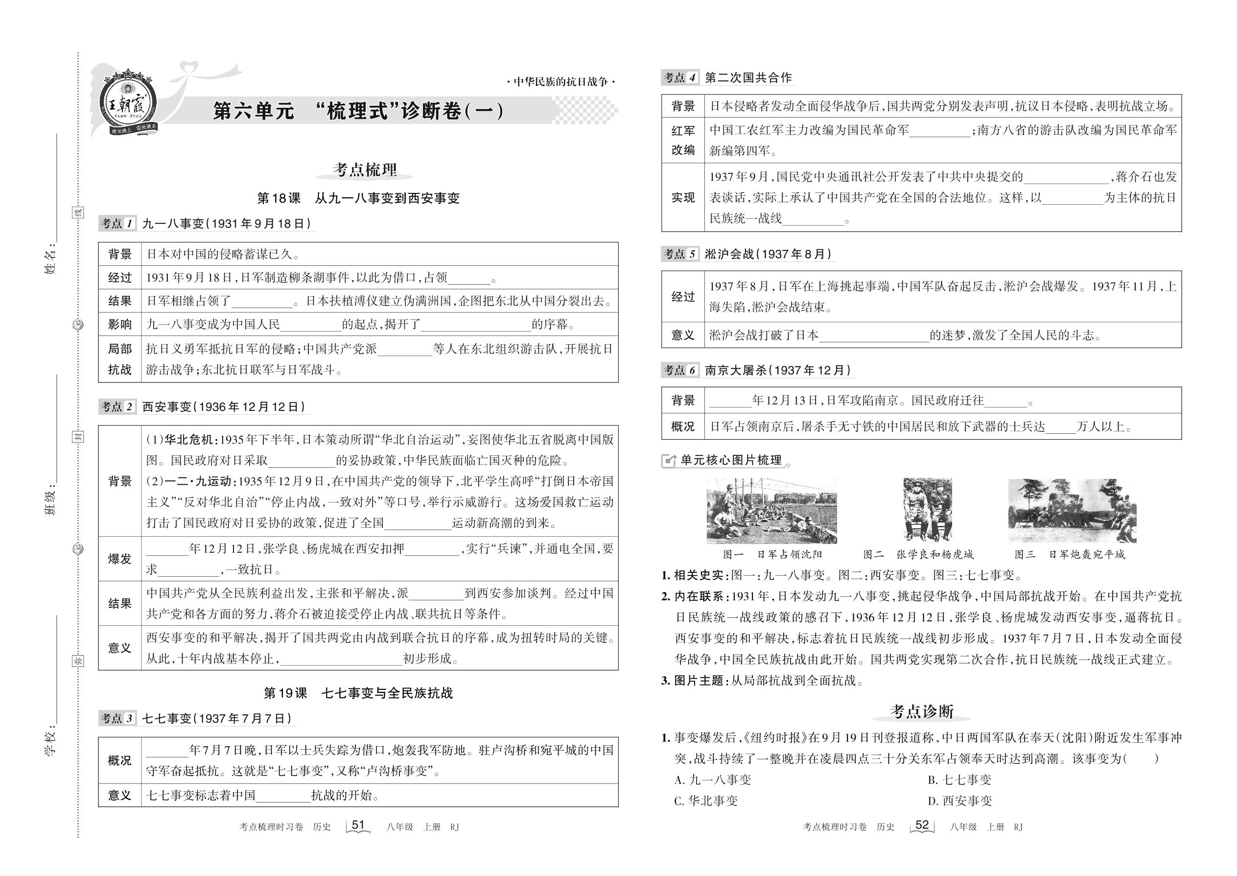 2022上册八年级历史人教版 第六单元 “梳理式”诊断卷(一)