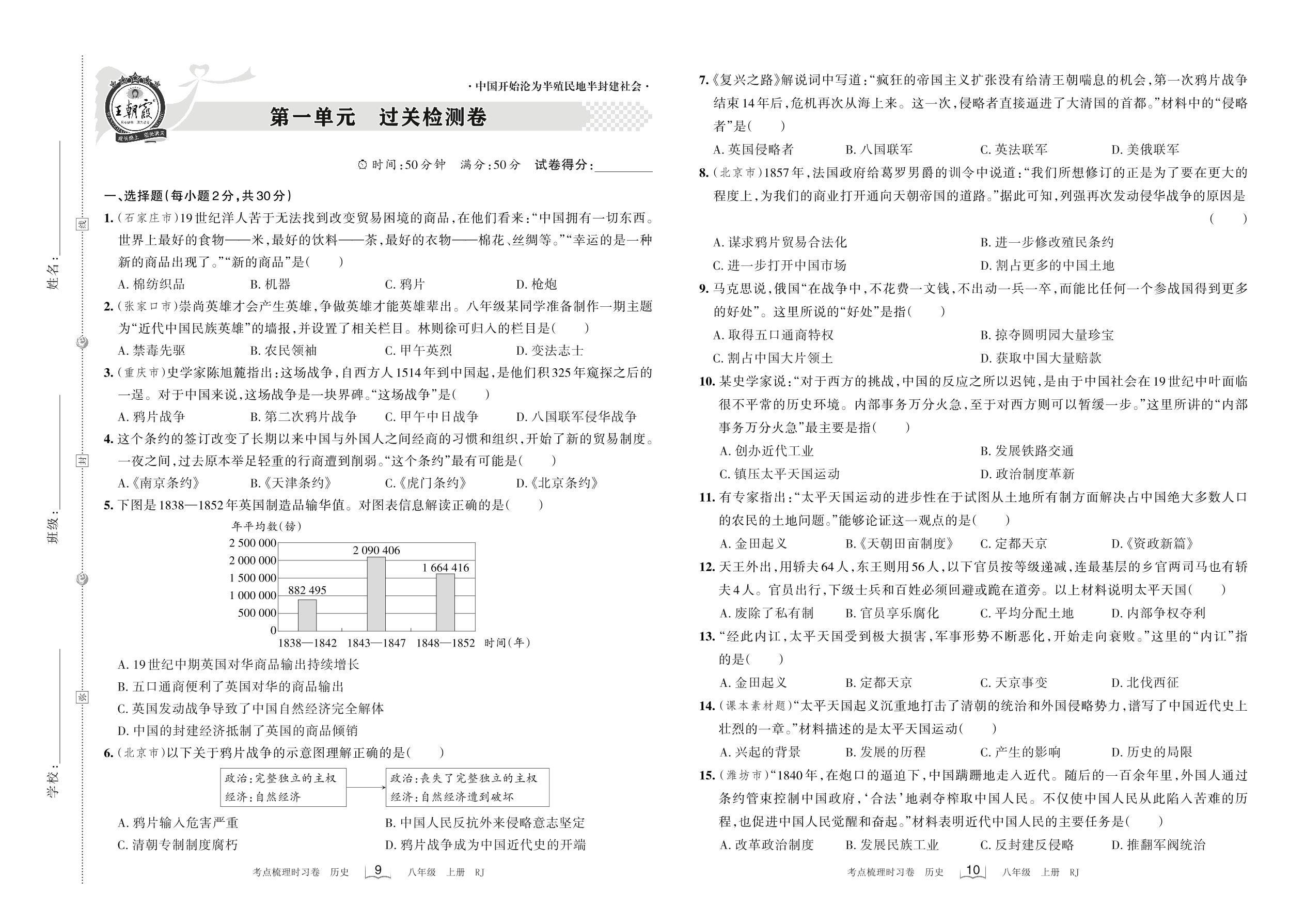 八年级历史人教版上册单元卷