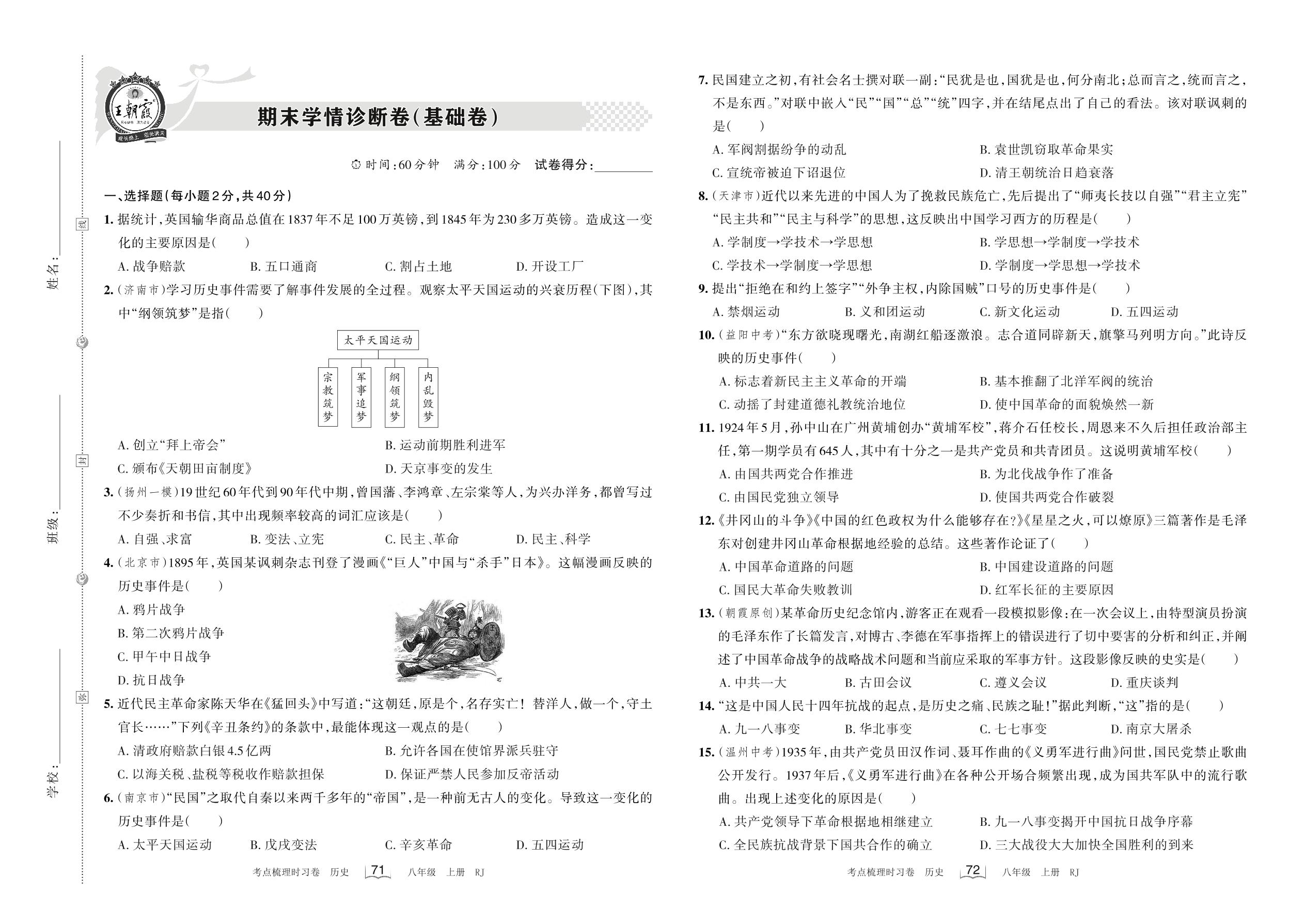 2022上册八年级历史人教版 期末学情诊断卷(基础卷)