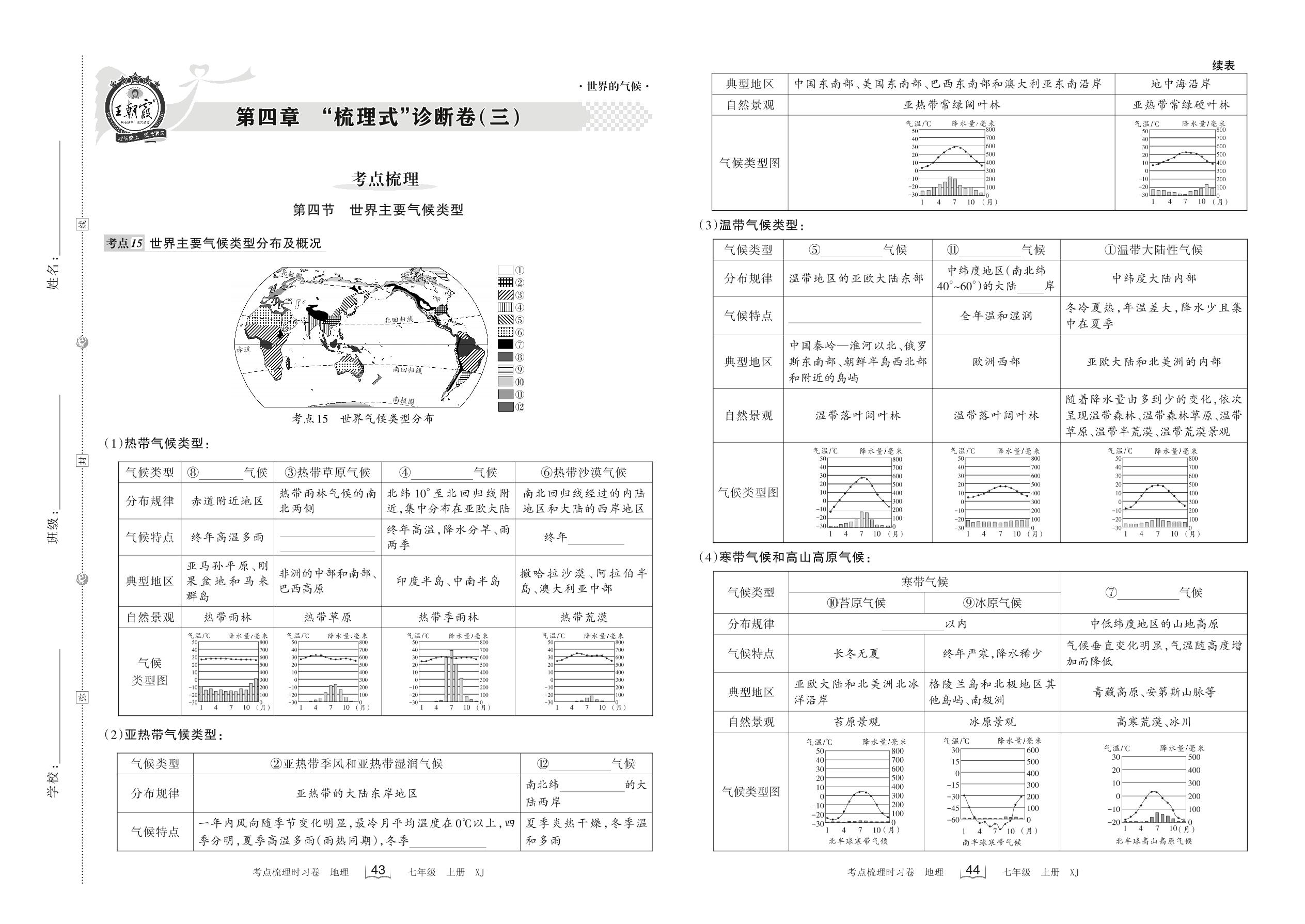 2022上册七年级地理湘教版 第四章 “梳理式”诊断卷(三)