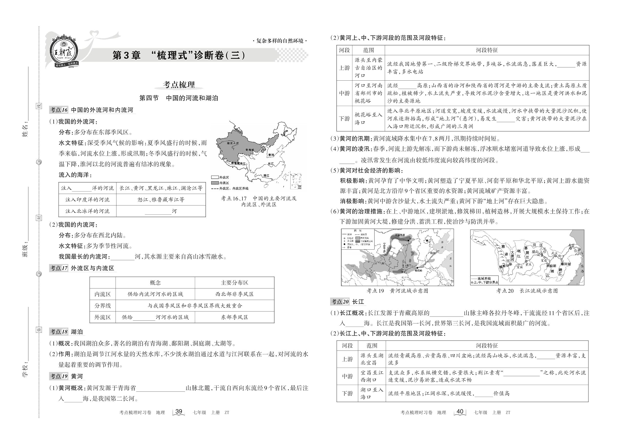 2022上册七年级地理中图版 第3章 “梳理式”诊断卷(三)