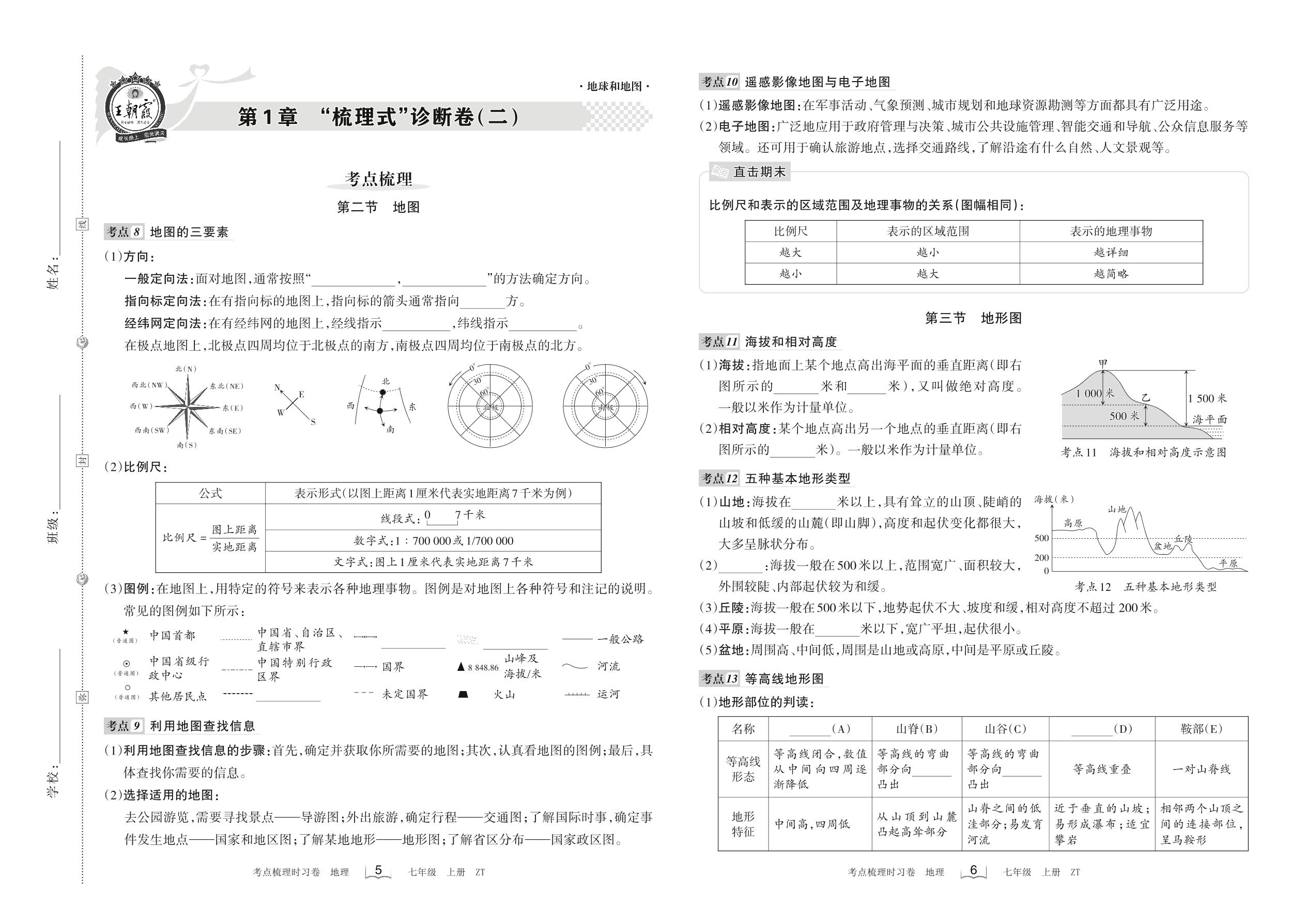 2022上册七年级地理中图版 第1章 “梳理式”诊断卷(二)