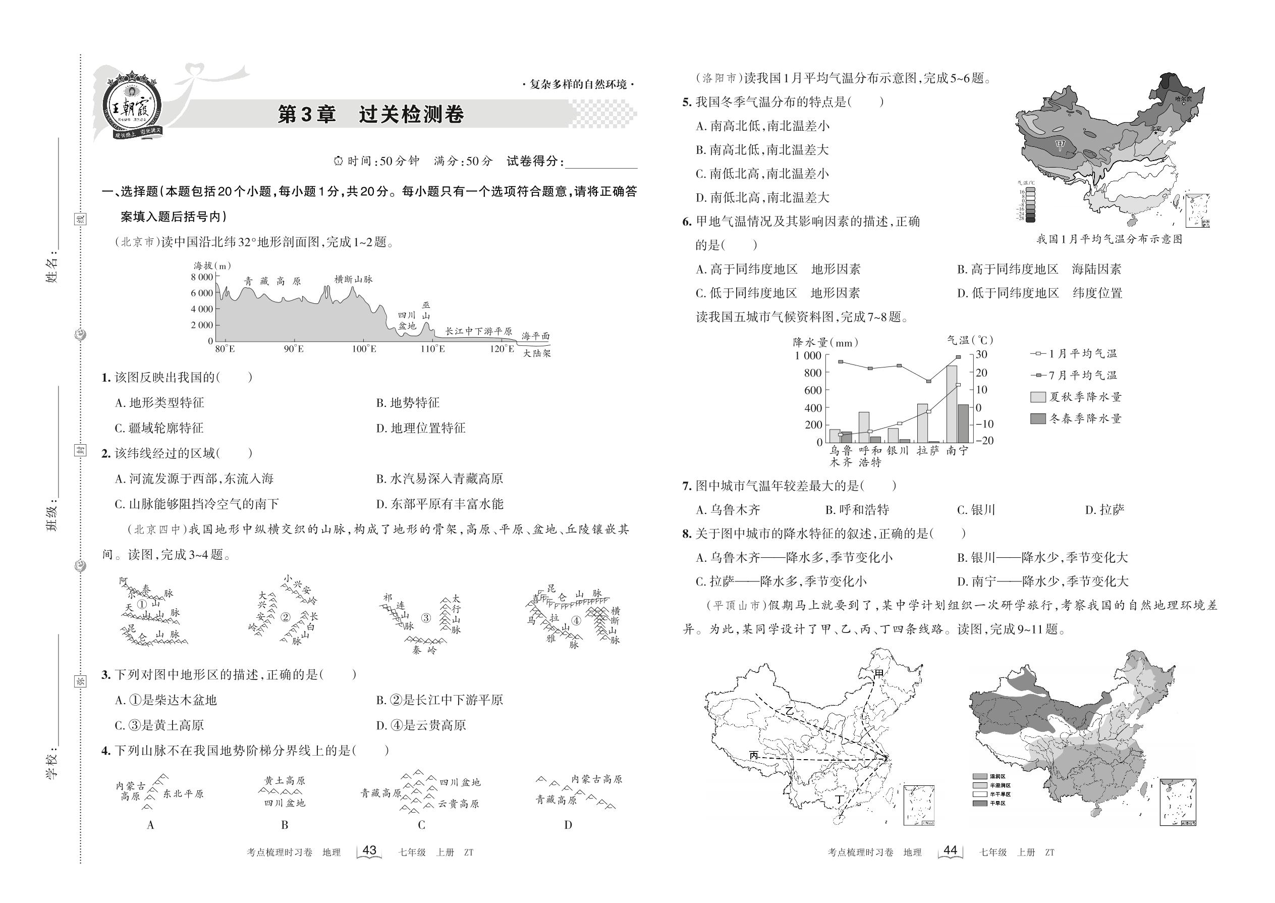 七年级地理中图版上册单元卷