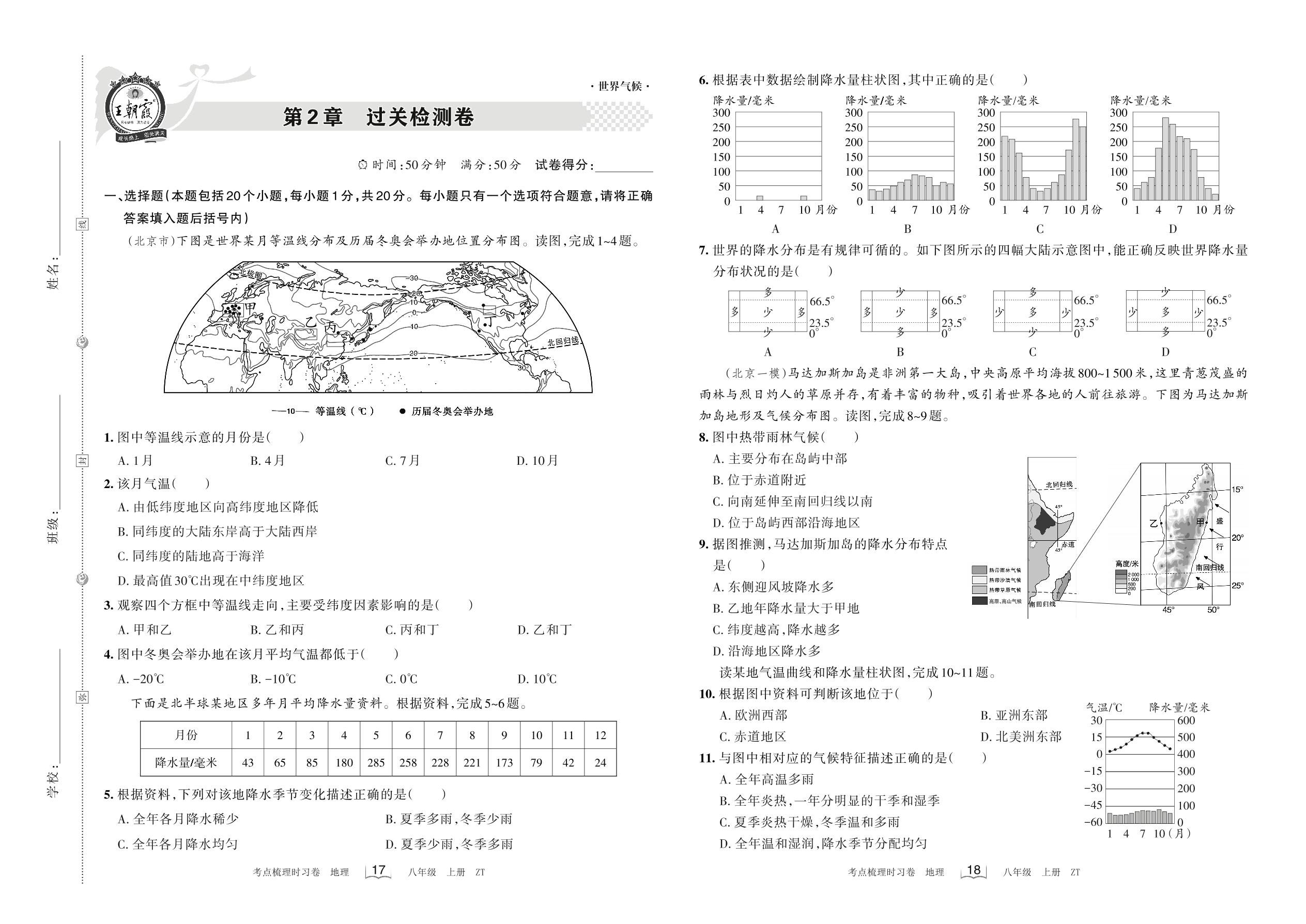 八年级地理中图版上册单元卷