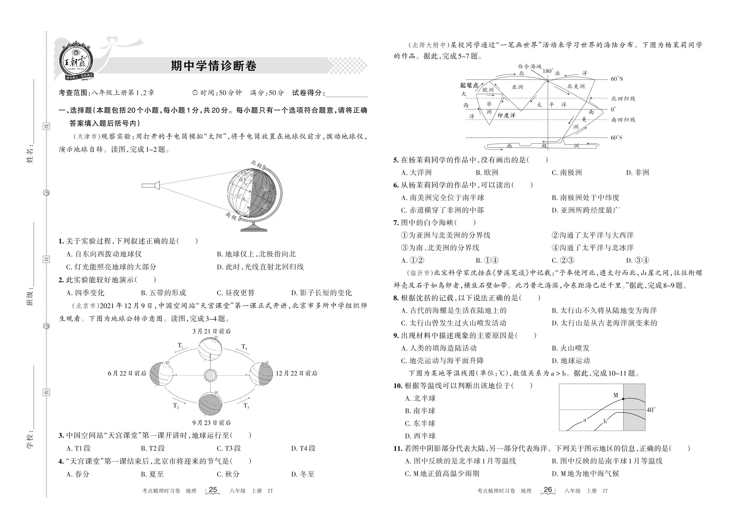 八年级地理中图版上册期中卷
