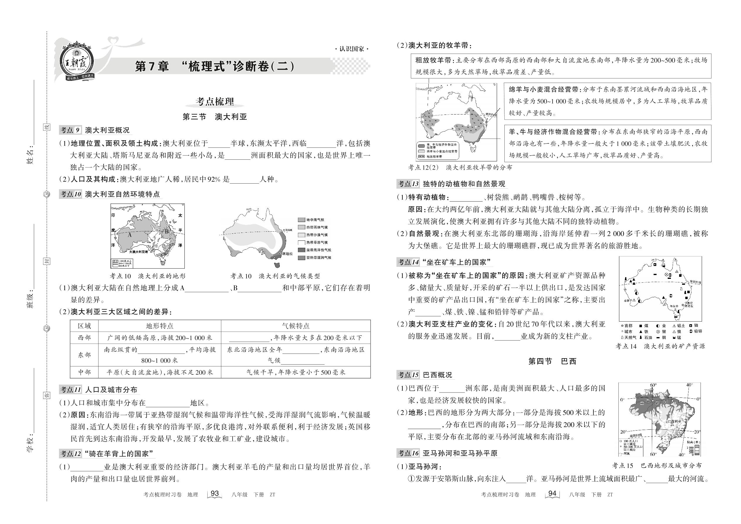 2023下册八年级地理中图版 第7章 “梳理式”诊断卷(二)